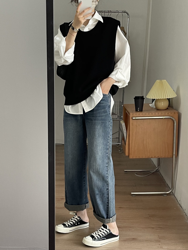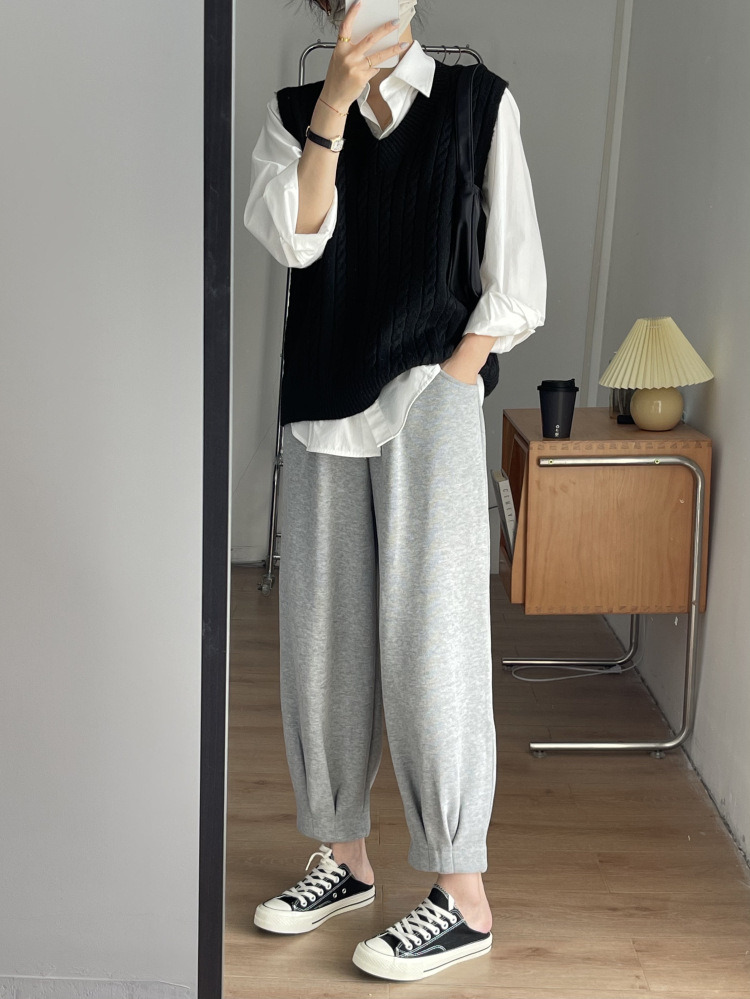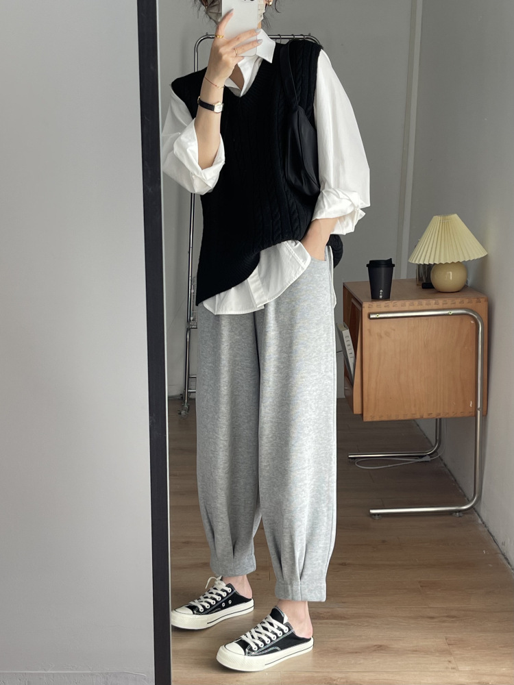 裤子26码,但是日常喜欢穿偏宽松的,一般都会选择衣服L码,裤子26~