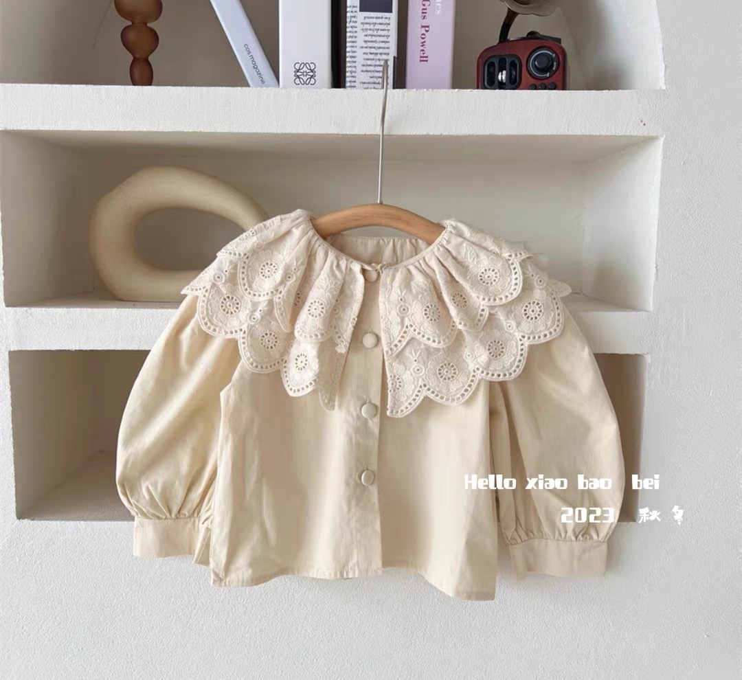 닝리 한국 스타일 여자 셔츠 가을 새로운 서양 스타일 달콤한 패션 아기 소녀 인형 목걸이 자수 립 탑