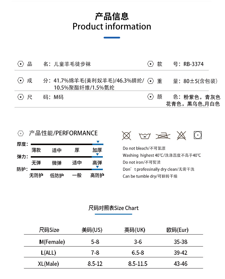 야외 메리노 울 하이킹 양말 중간 두꺼운 하이킹 어린이 하이킹 캠핑 빠른 건조 양모 하이킹 양말스토어 가기