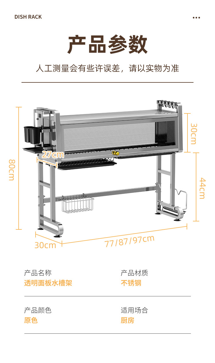 304 스테인레스 스틸 주방 싱크 스토리지 랙 조리대 다기능 식기 캐비닛 도어 보울 접시 배수 그릇 접시 보관 랙