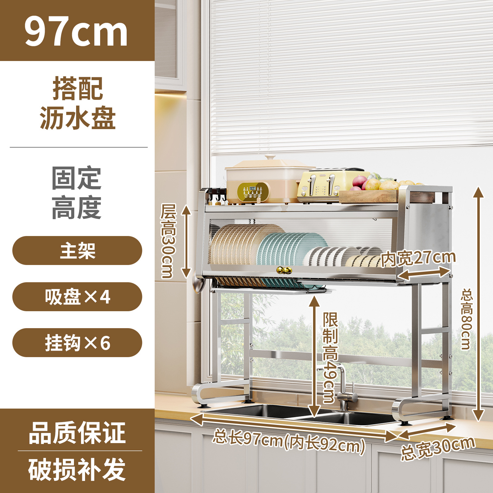 • 304 스테인레스 스틸 싱크 캐비닛 [97CM] 전체 세트