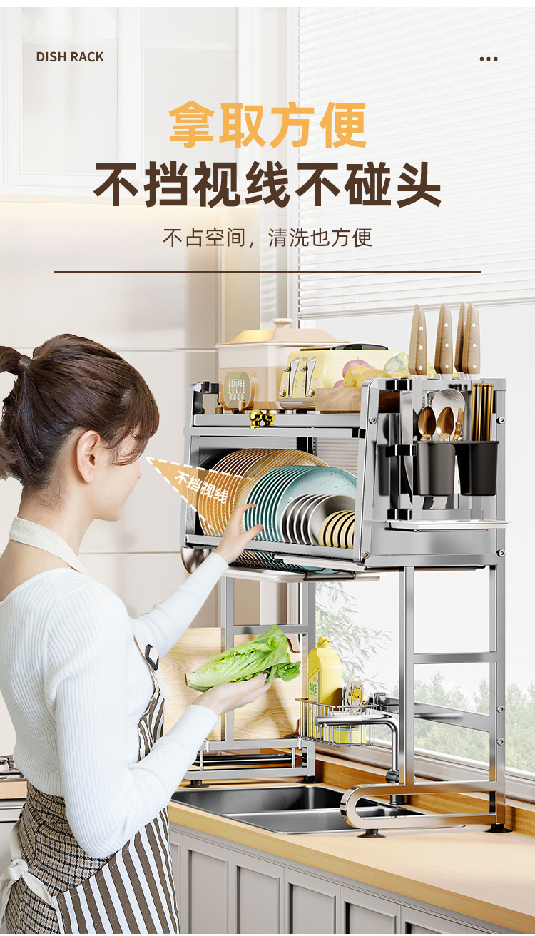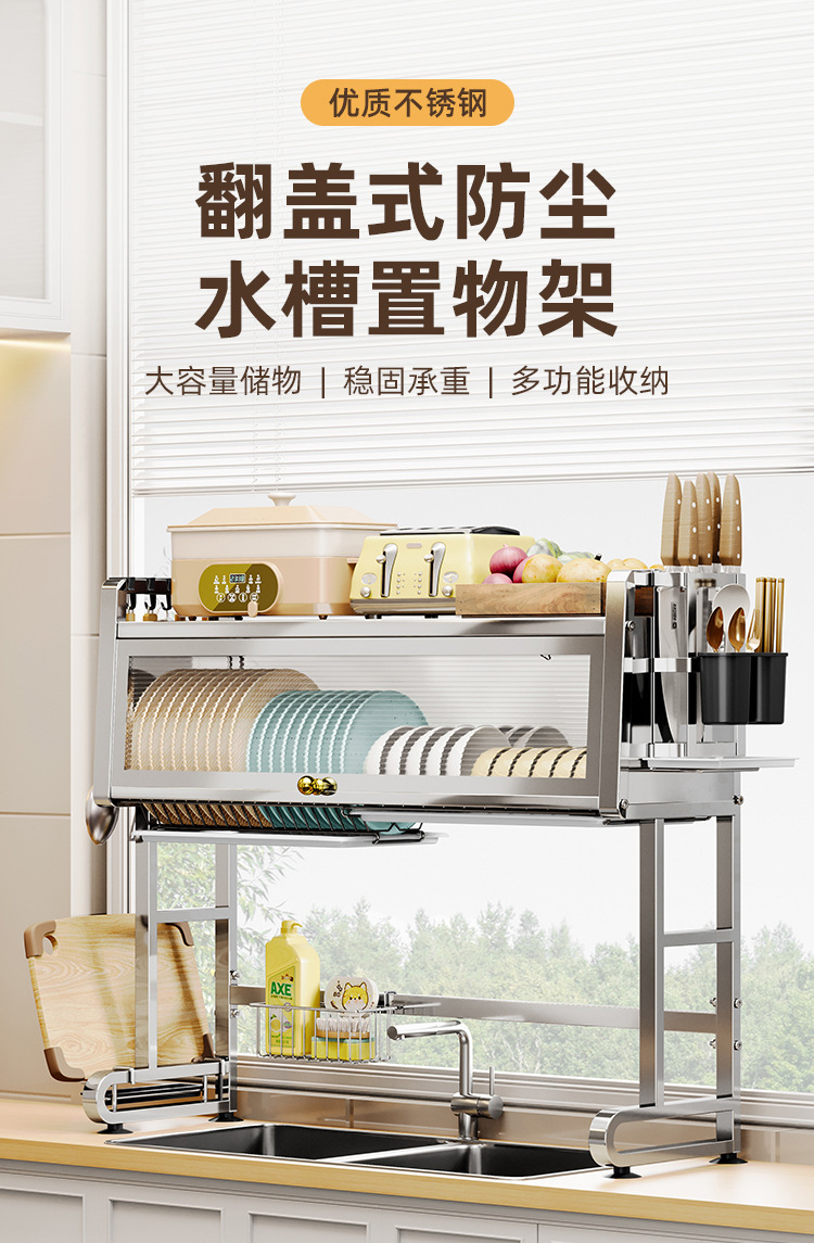 304 스테인레스 스틸 주방 싱크 스토리지 랙 조리대 다기능 식기 캐비닛 도어 보울 접시 배수 그릇 접시 보관 랙스토어 가기