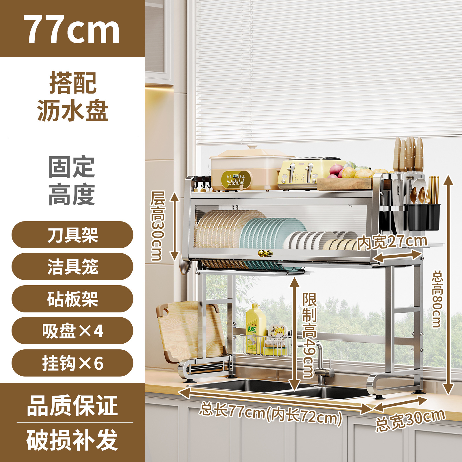 • 304 스테인레스 스틸 싱크 캐비닛 [77CM] 전체 세트