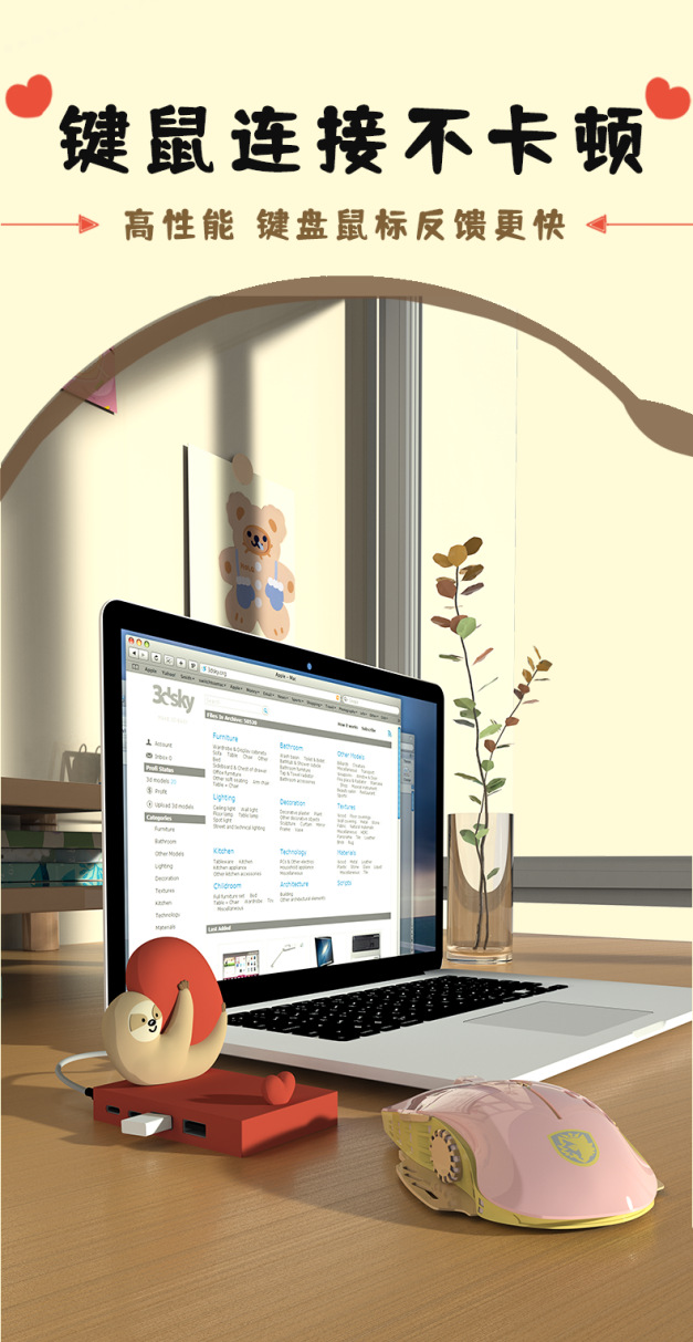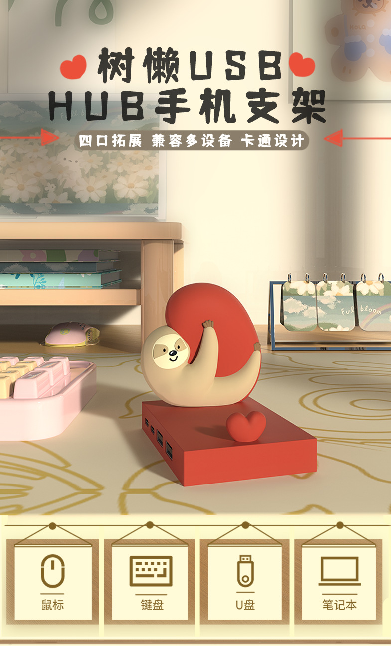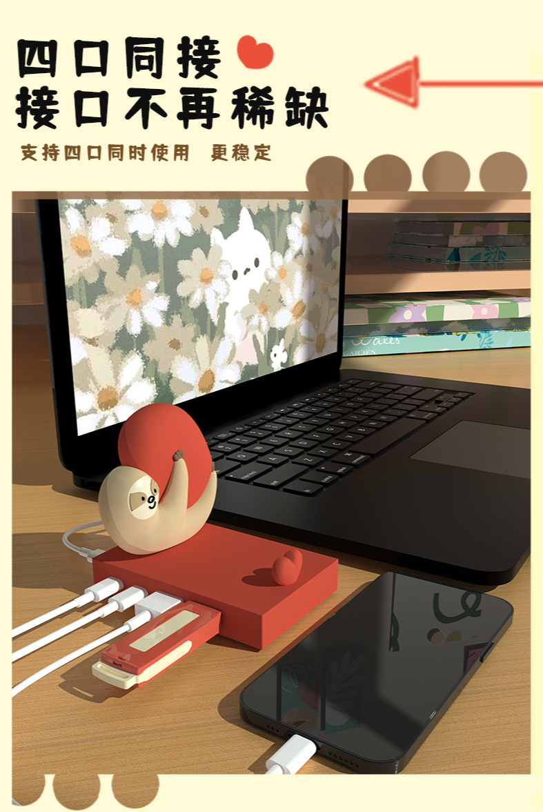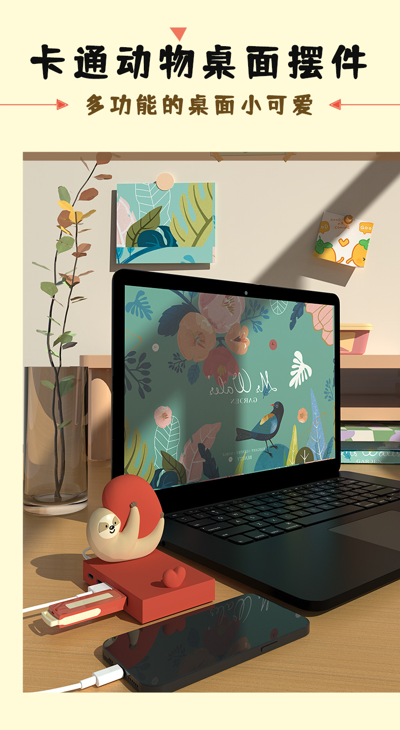 국경 나무 늘보 4 포트 USB 허브 허브 스플리터 개인화 된 창조적 인 바탕 화면 귀여운 휴대 전화 브래킷 장식스토어 가기