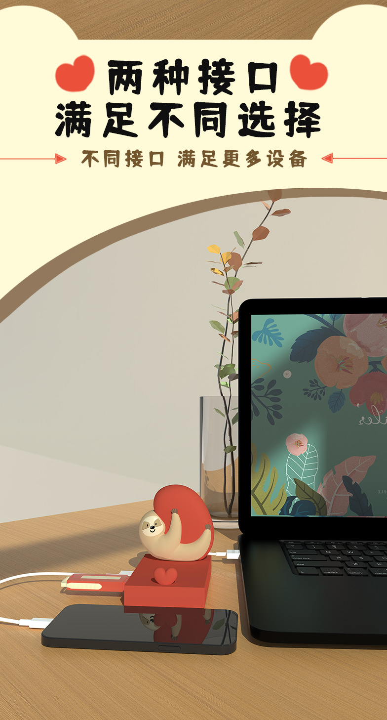 국경 나무 늘보 4 포트 USB 허브 허브 스플리터 개인화 된 창조적 인 바탕 화면 귀여운 휴대 전화 브래킷 장식