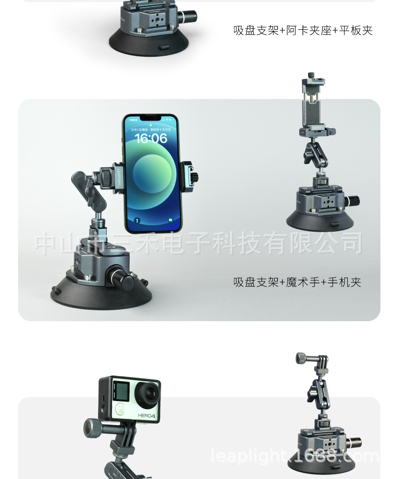 • LYV1 흡착컵 브라켓 + LYE15 매직핸드 + LYG1 퀵 릴리스 플레이트(회색)