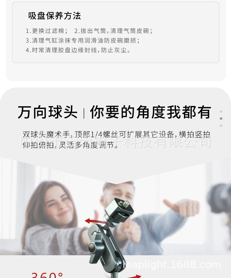 Lipley 자동차 슈팅 브래킷 진공 흡입 컵 자동차 촬영 라이브 이상한 손 매직 손 팔 확장