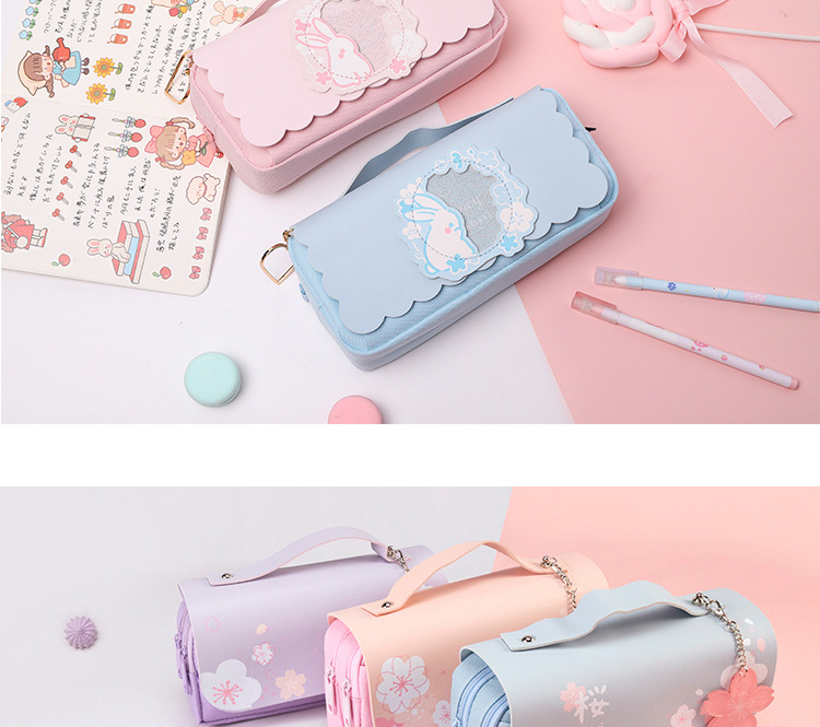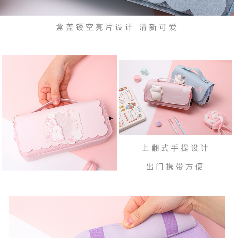 카피 발라 연필 케이스 3 층 대용량 문구 케이스 압축 유럽 가방 연필 케이스 고가 소녀의 심장 휴대용 연필 케이스스토어 가기