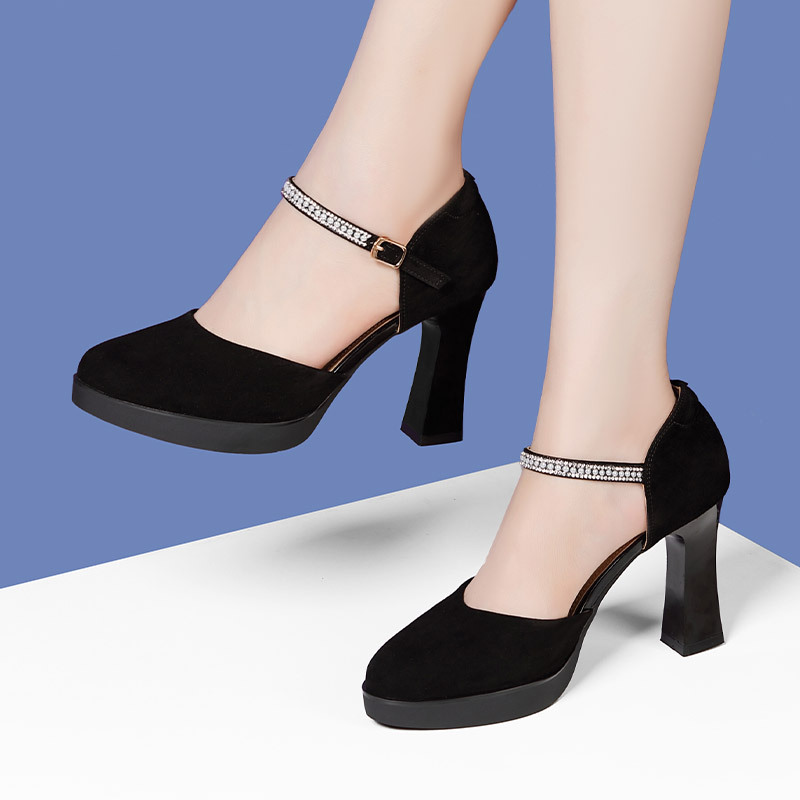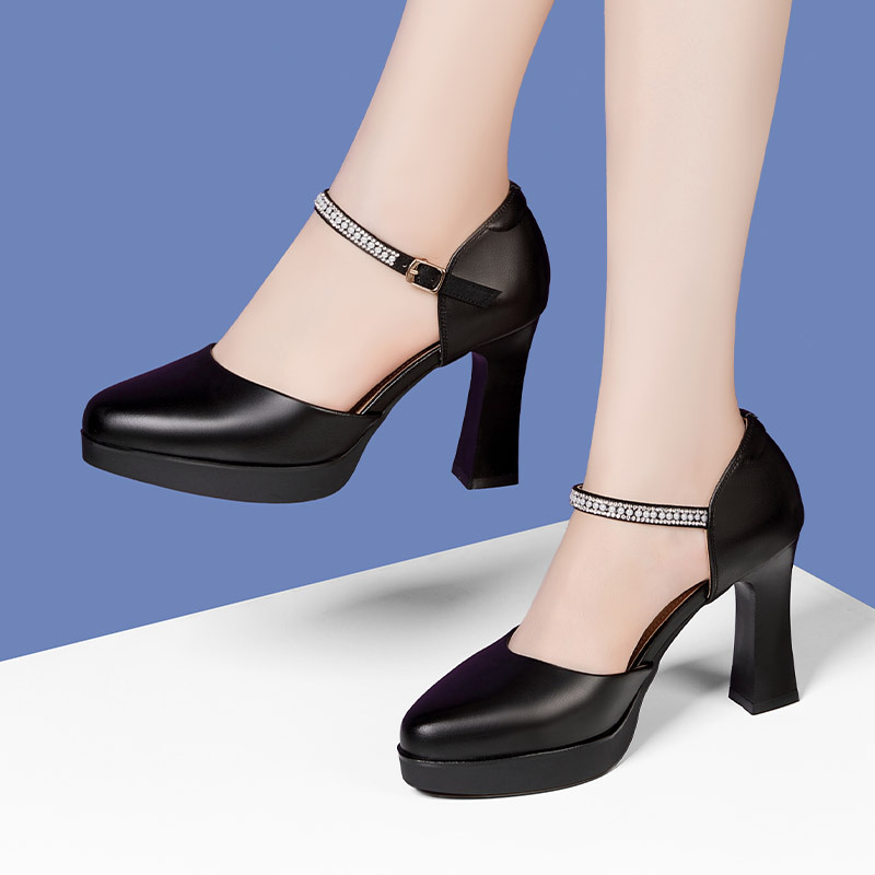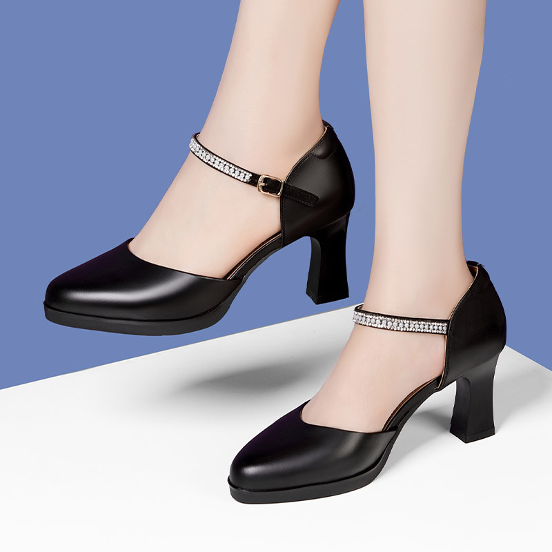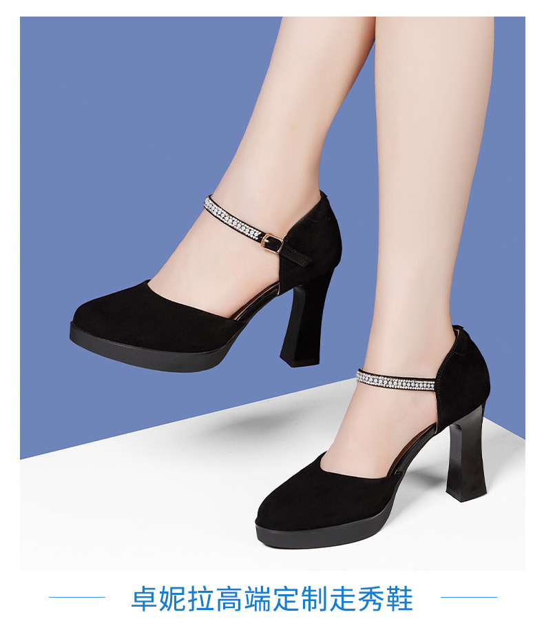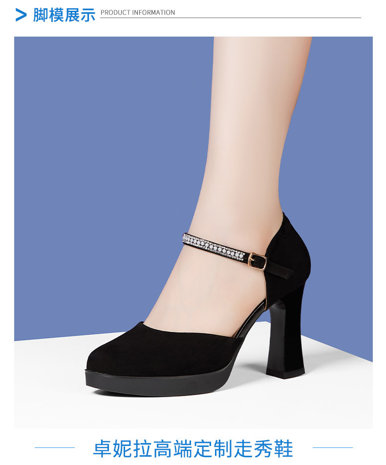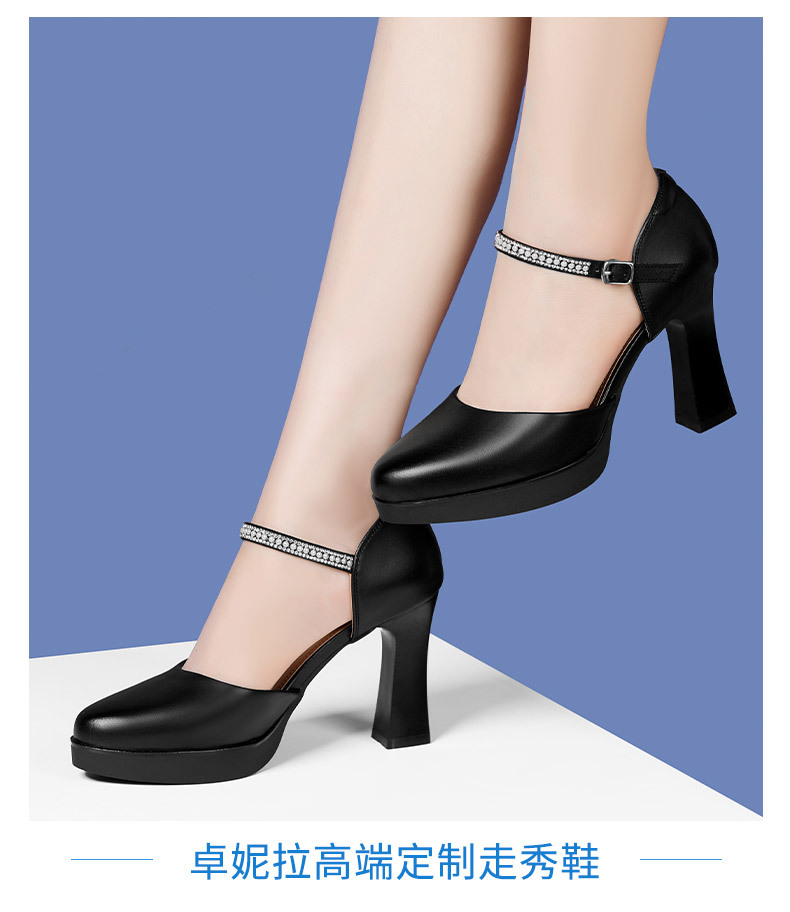 소프트 소가죽 바디 전문 보행 캣워크 하이힐 신발 매트 가죽 청키 힐 모델 성능 바디 트레이닝 여성용 싱글 레이어 신발스토어 가기