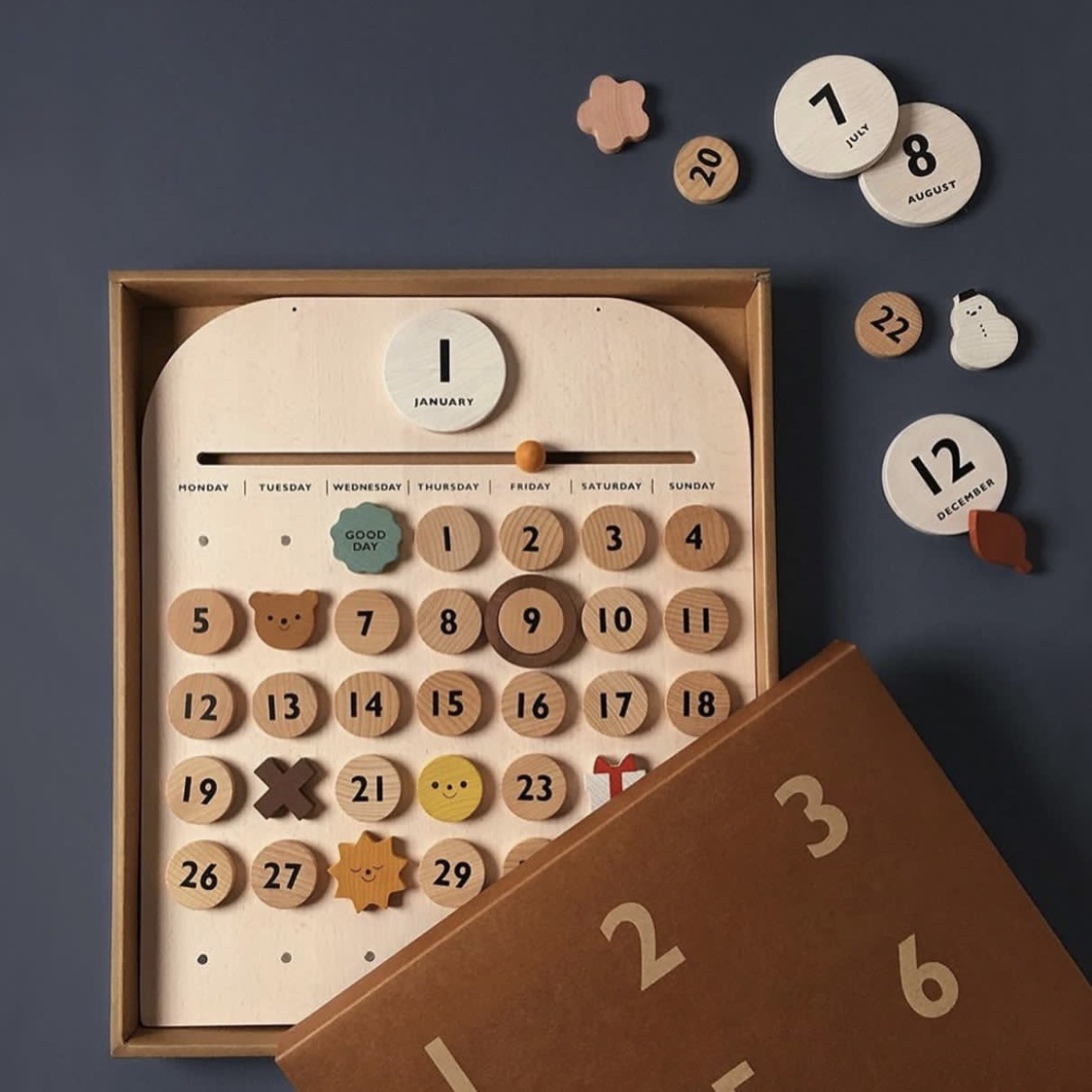 너도밤 나무 달력 마그네틱 디지털 나무 장난감 어린이 방 장식 스타일스토어 가기