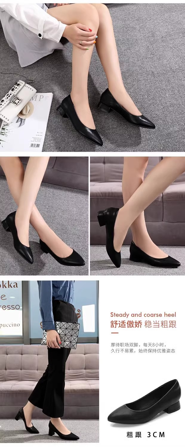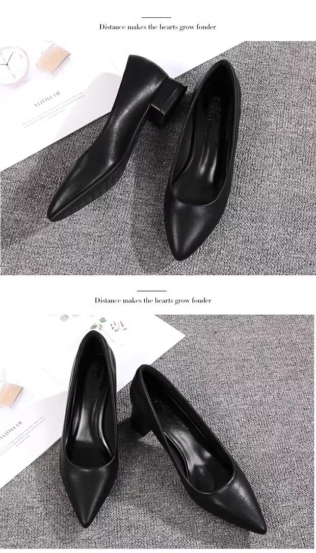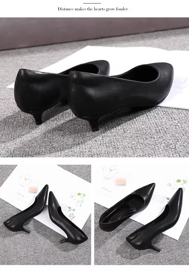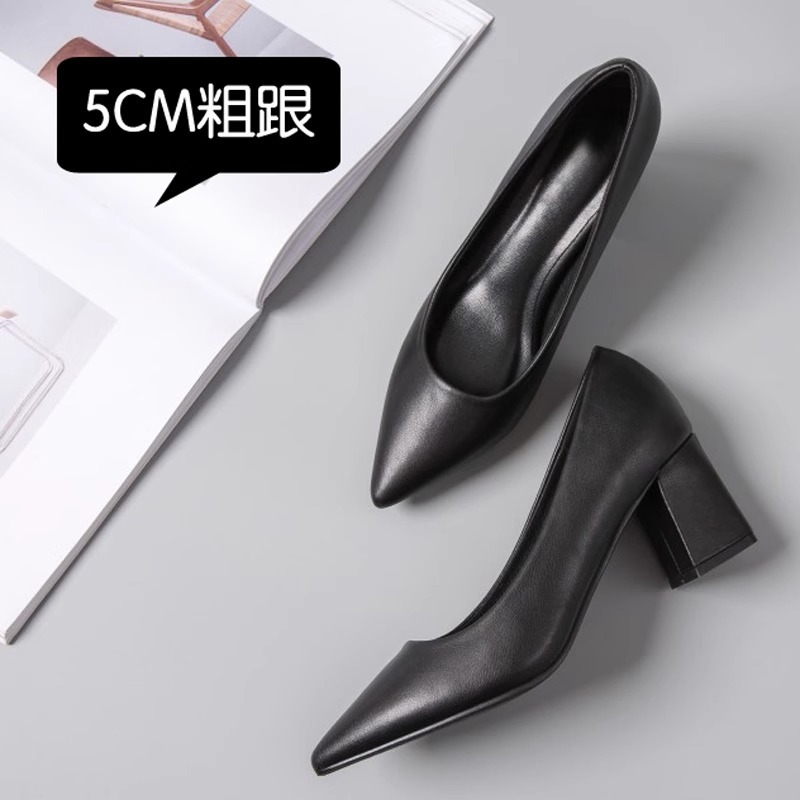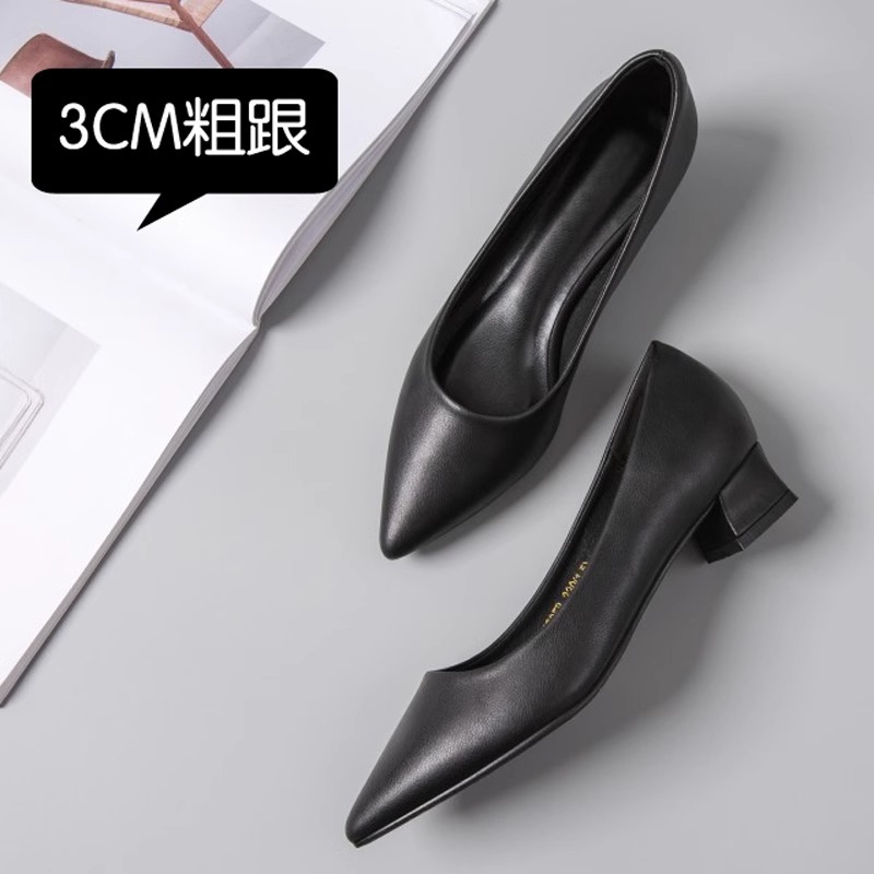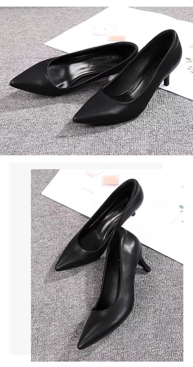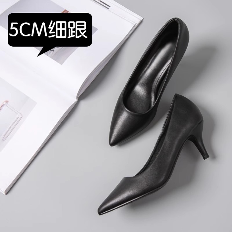 기질 부드러운 가죽 신발 스틸레토 부드러운 가죽 싱글 신발 미드 힐 2025 블랙 정장 하이힐 여성을위한 전문 스튜어디스 작업 신발스토어 가기