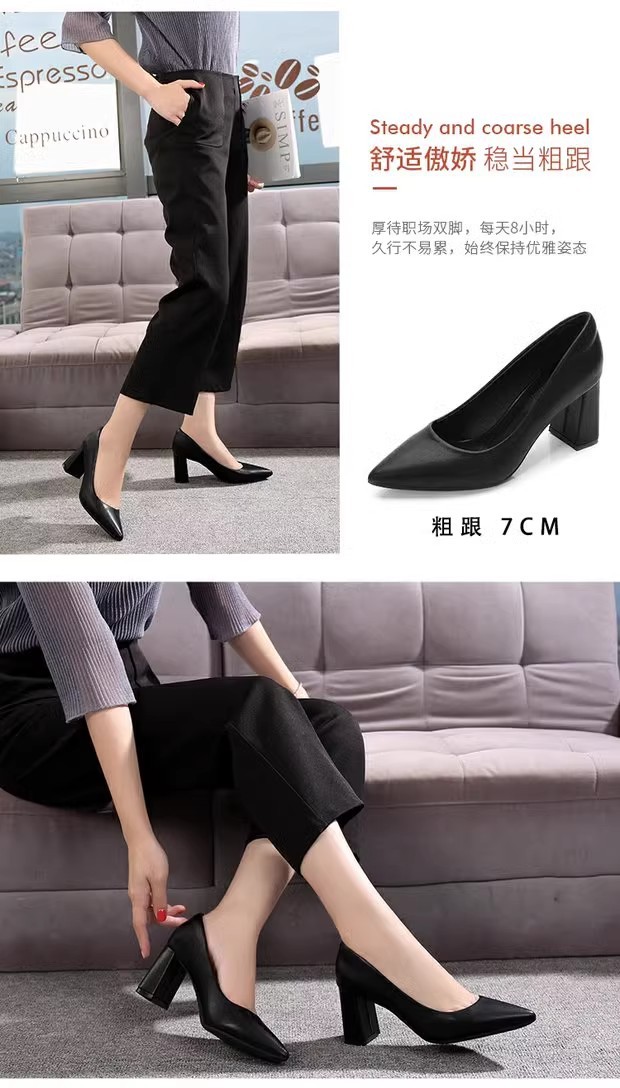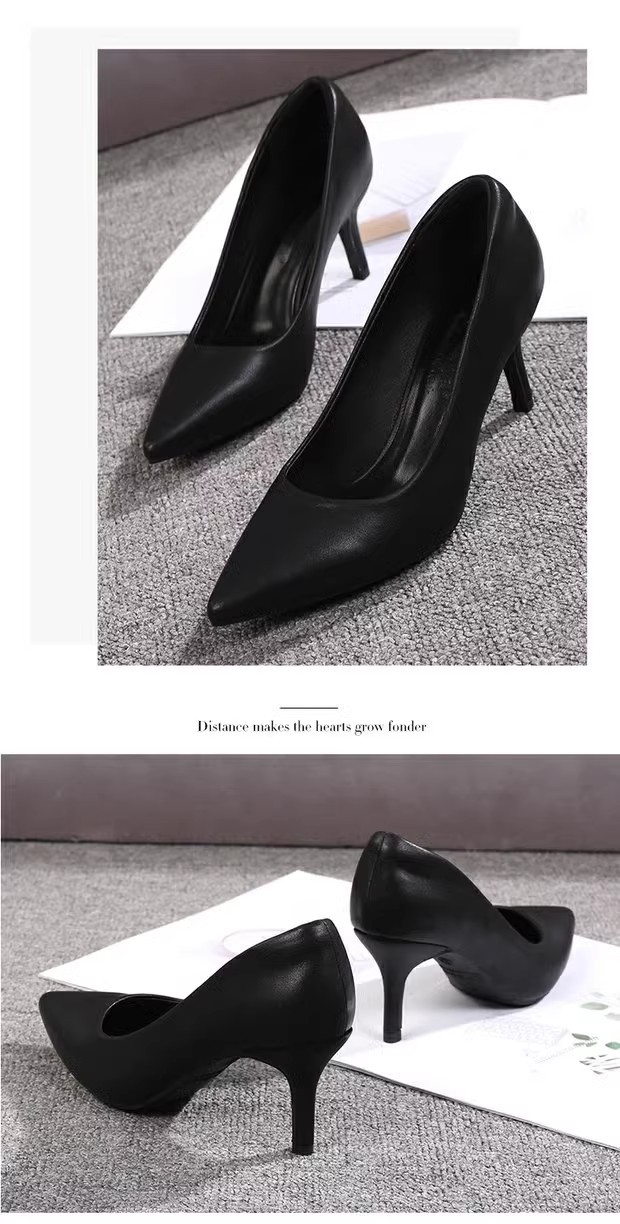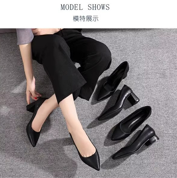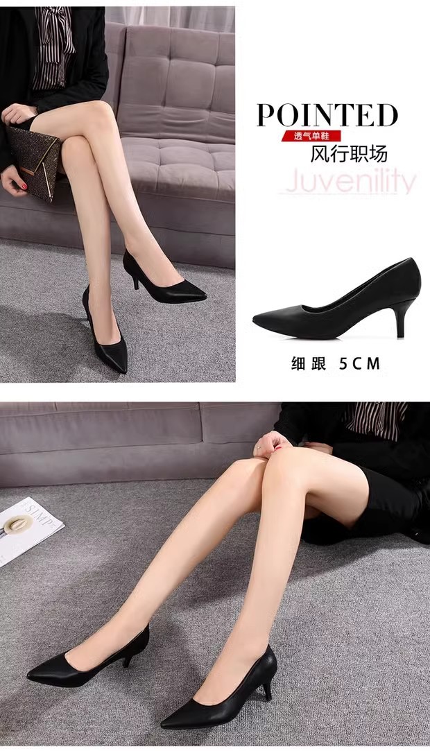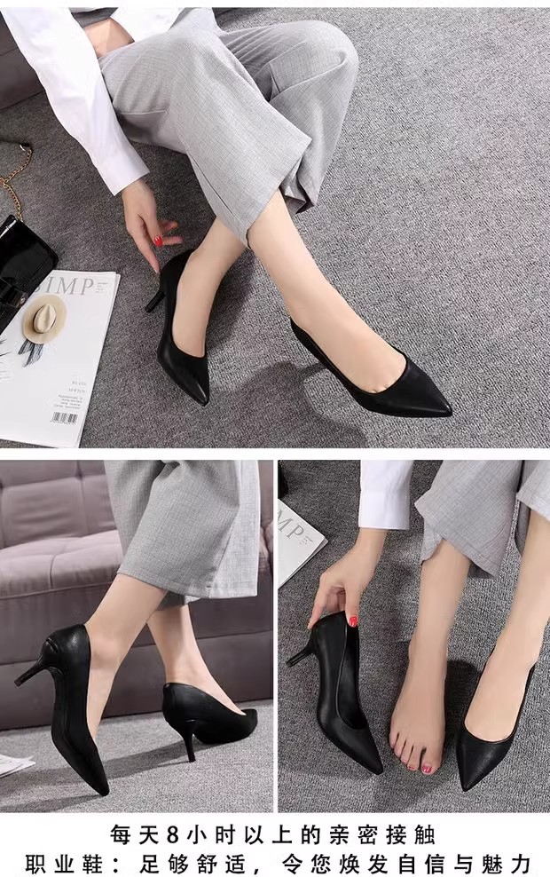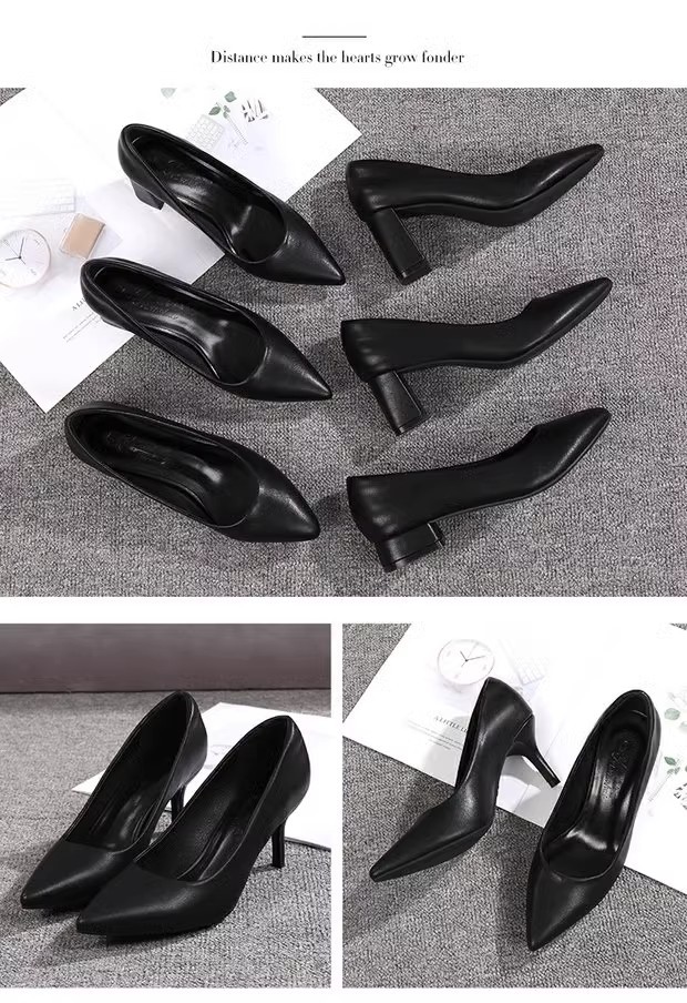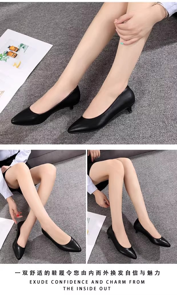기질 부드러운 가죽 신발 스틸레토 부드러운 가죽 싱글 신발 미드 힐 2025 블랙 정장 하이힐 여성을위한 전문 스튜어디스 작업 신발스토어 가기