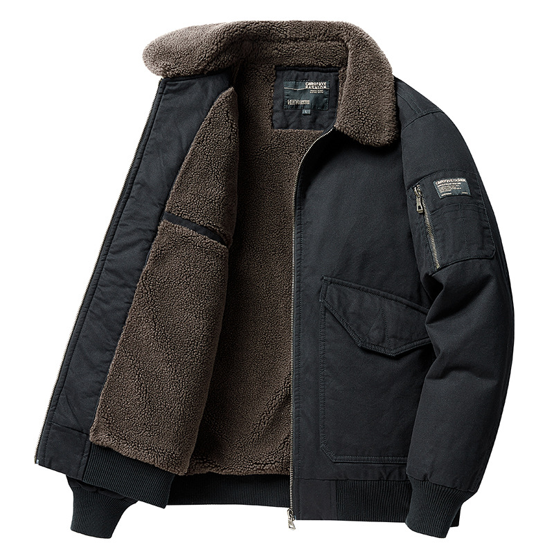 남성용 양모 코튼 파일럿 재킷 겨울 기모 두껍게 된 따뜻한 코튼 재킷 캐주얼 작업복 너구리 재킷