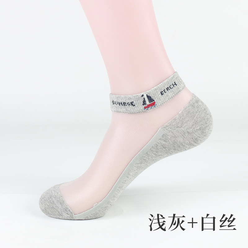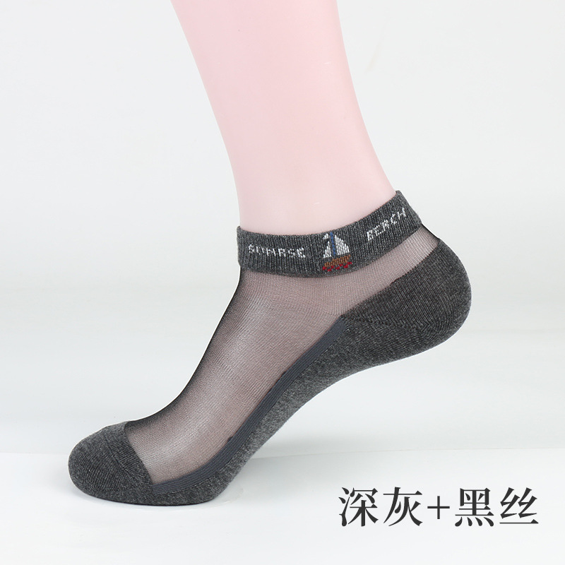 남성 양말 여름 얇은 패션 크리스탈 실크 통기성 면화 바닥 땀 흡수성 뒤꿈치 확대 유리 실크 보트 양말 공장 도매스토어 가기