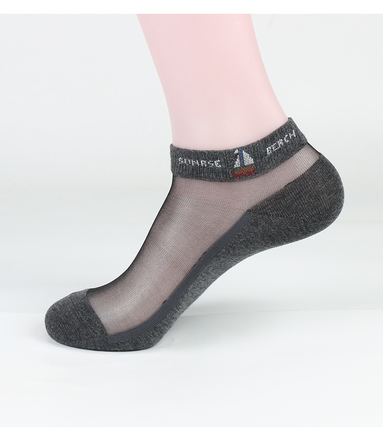 남성 양말 여름 얇은 패션 크리스탈 실크 통기성 면화 바닥 땀 흡수성 뒤꿈치 확대 유리 실크 보트 양말 공장 도매