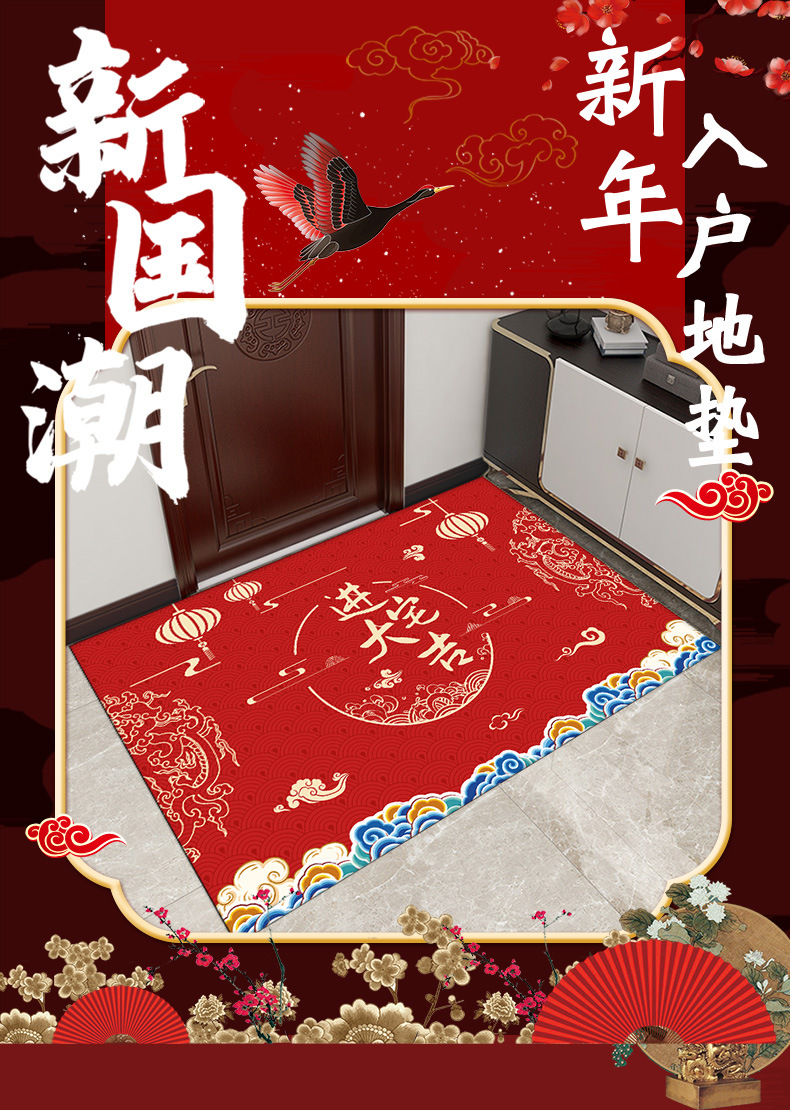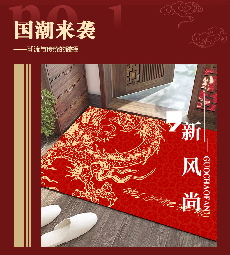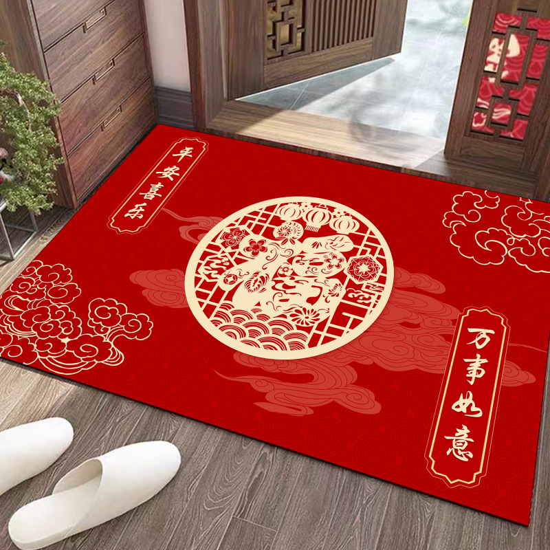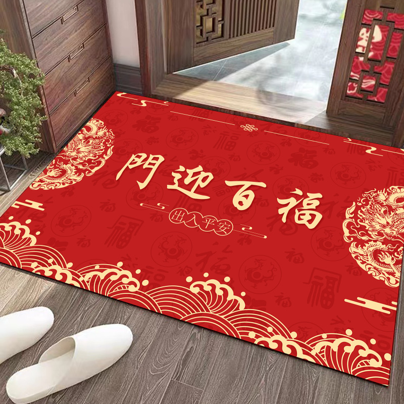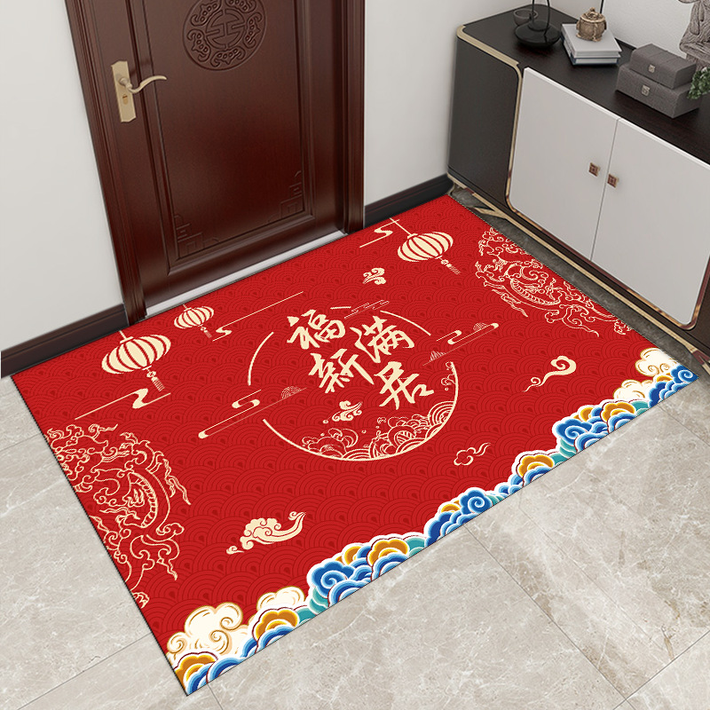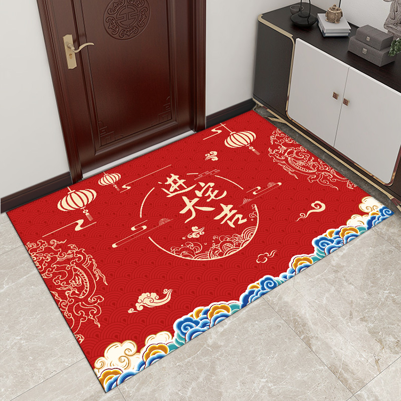 새로운 중국 용 년 바닥 매트 문 얼룩 방지 크리스탈 벨벳 바닥 매트 가정용 흡수성 미끄럼 쉬운 홈 매트스토어 가기