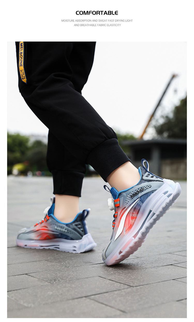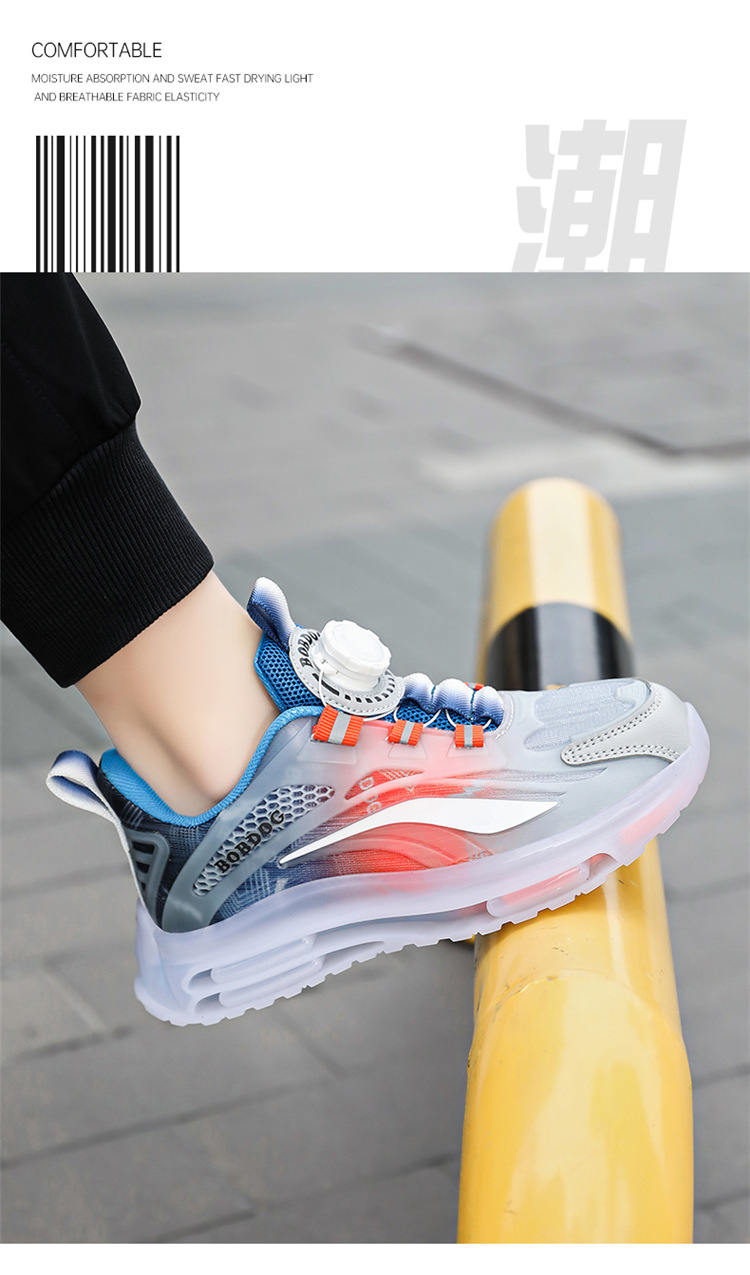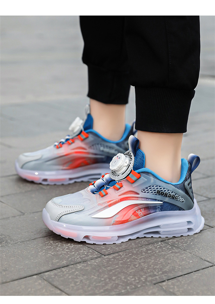 Babdou 어린이 신발 소년 운동화 2024 봄과 가을 새로운 통기성 회전 버튼 가죽 메쉬 신발 패션스토어 가기