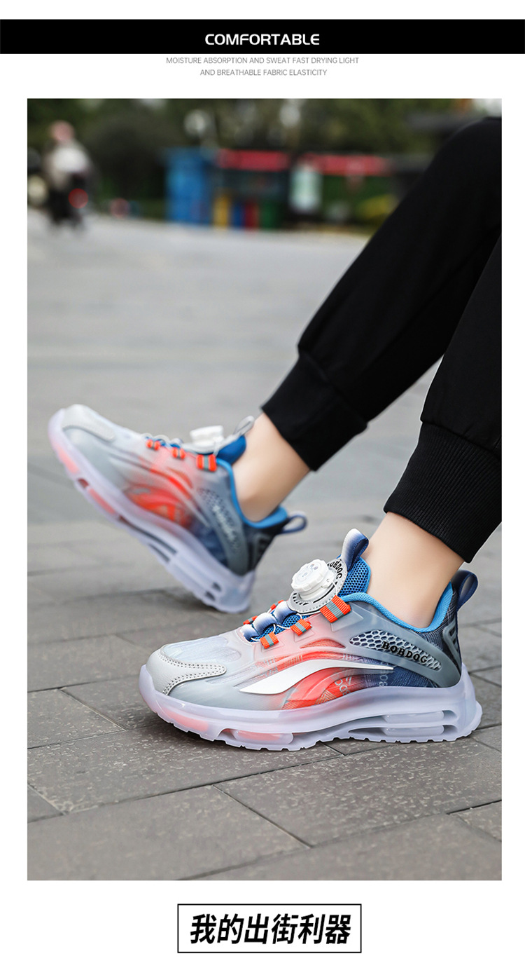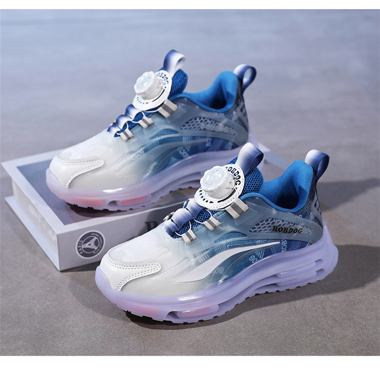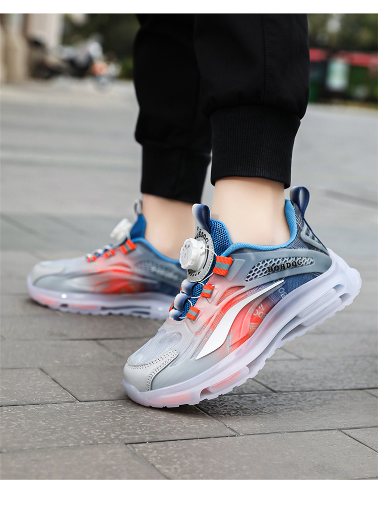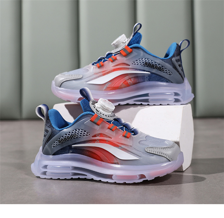 Babdou 어린이 신발 소년 운동화 2024 봄과 가을 새로운 통기성 회전 버튼 가죽 메쉬 신발 패션