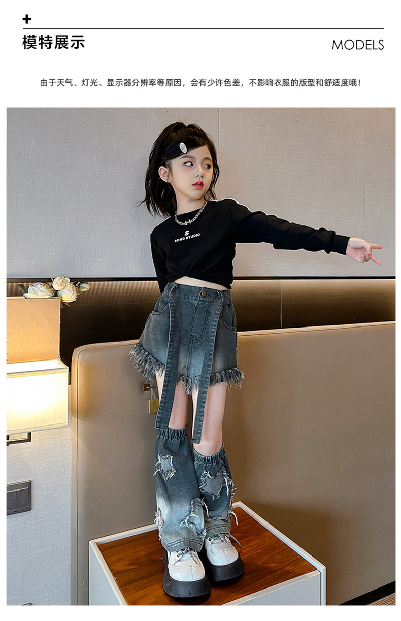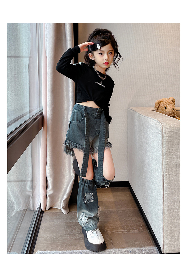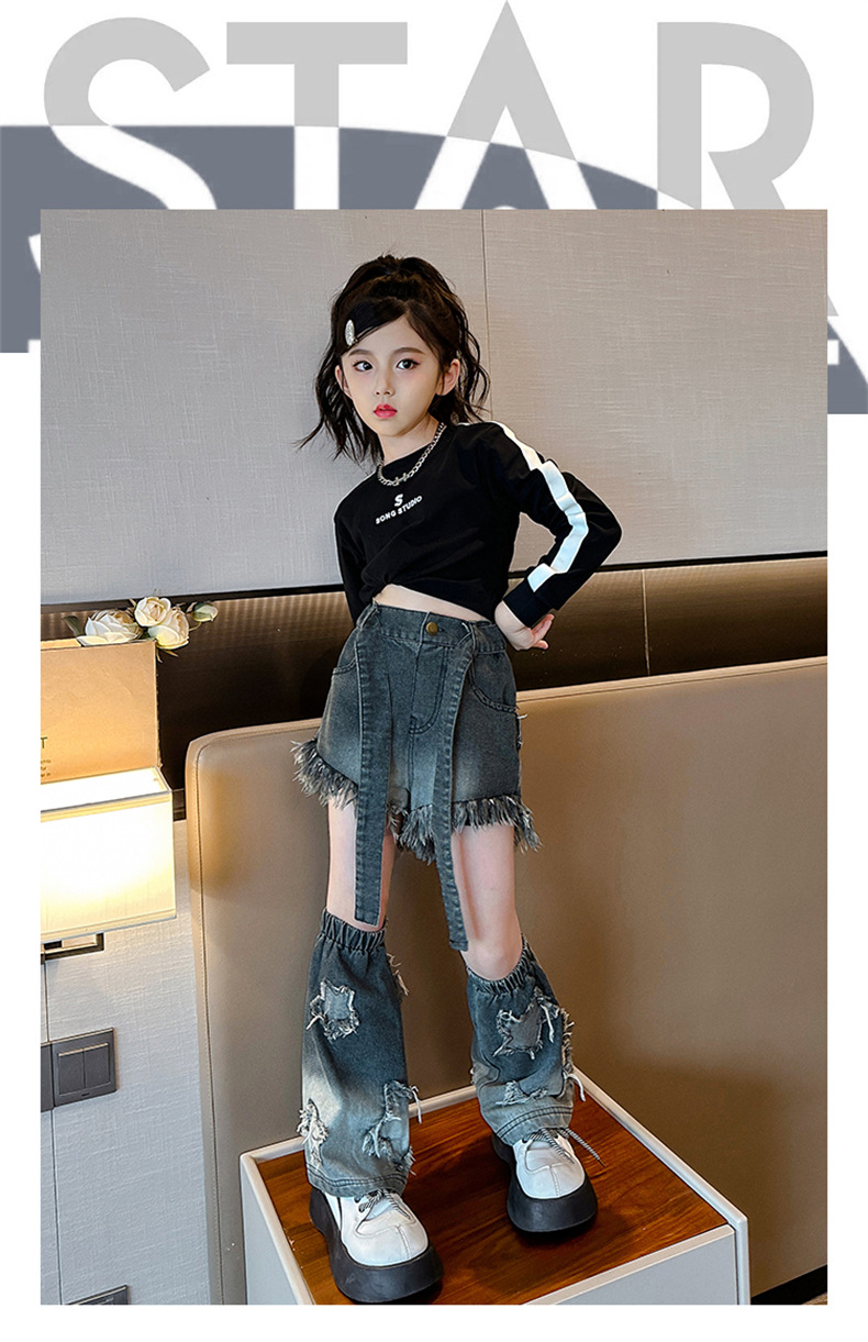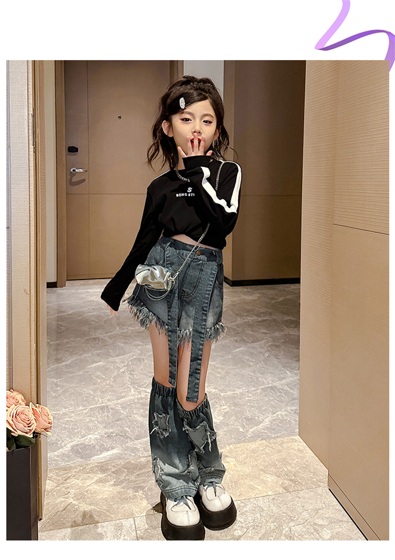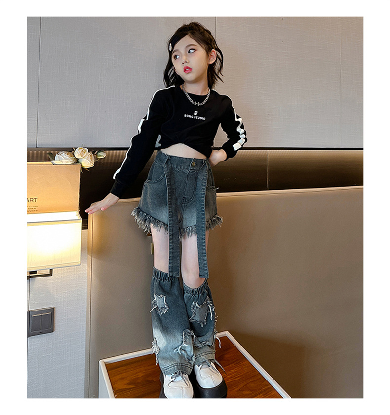 . 소녀 청바지 가을 2024 새로운 스타일 소녀 서양식 2 섹션 바지 가을 옷스토어 가기