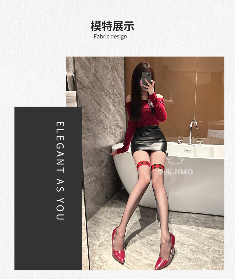 새로운 격자 무늬 빨간색 가장자리 검은 실크 대조 색 무릎 위 허벅지 양말 초박형 순수한 욕망 검은 실크 무릎 위 긴 섹시한 스타킹스토어 가기