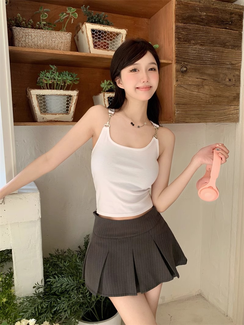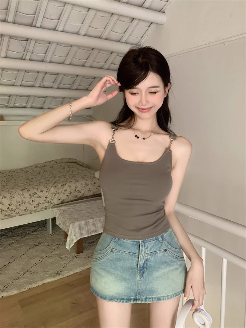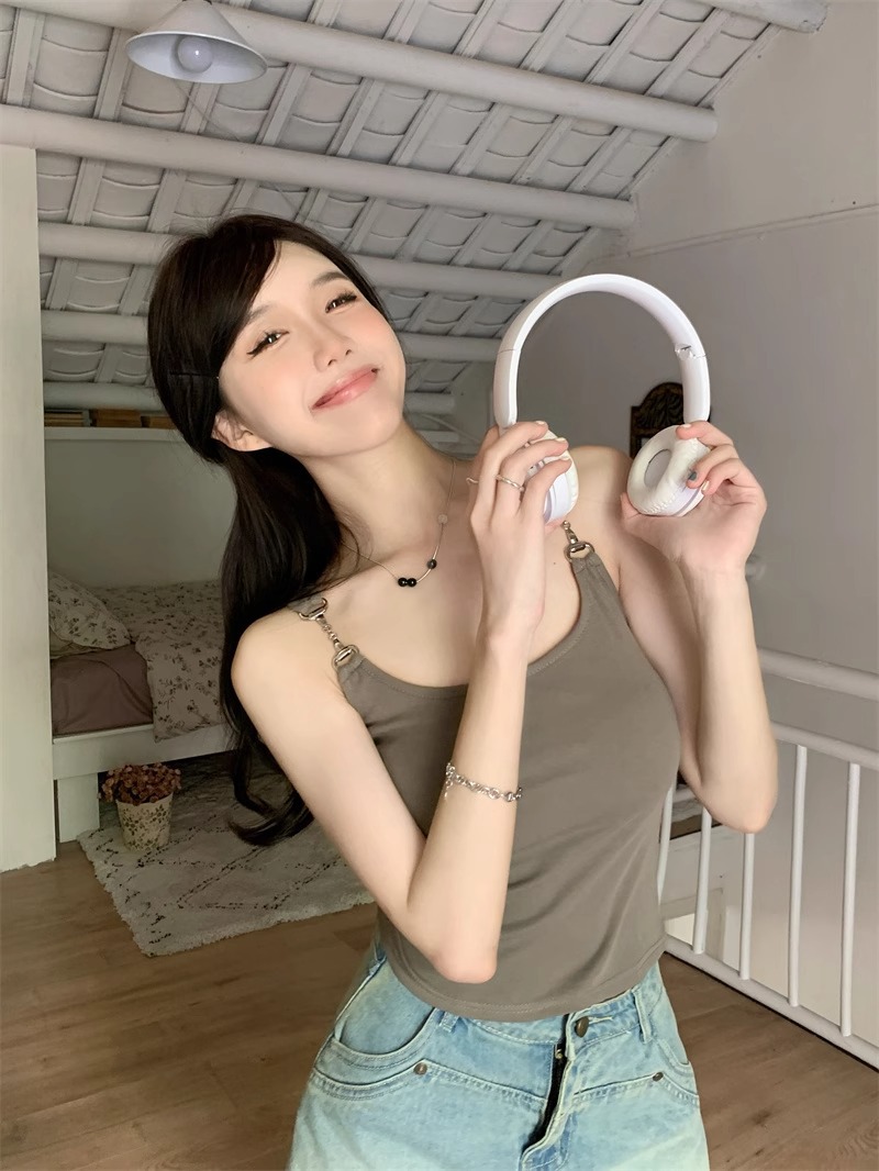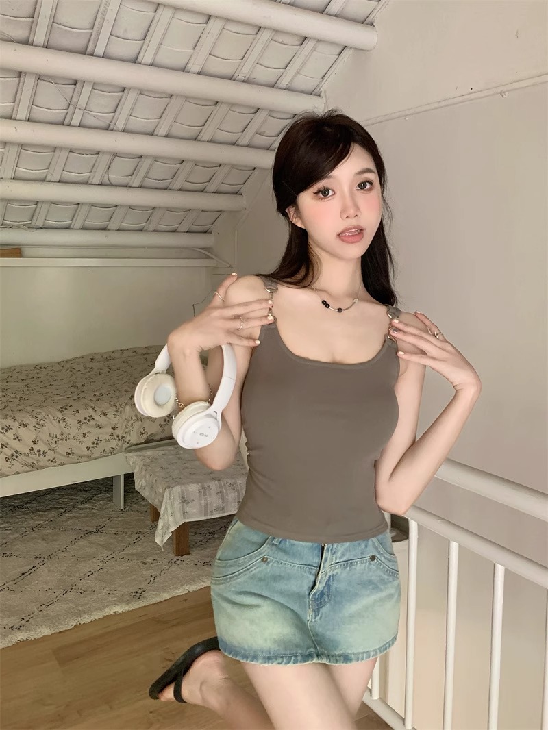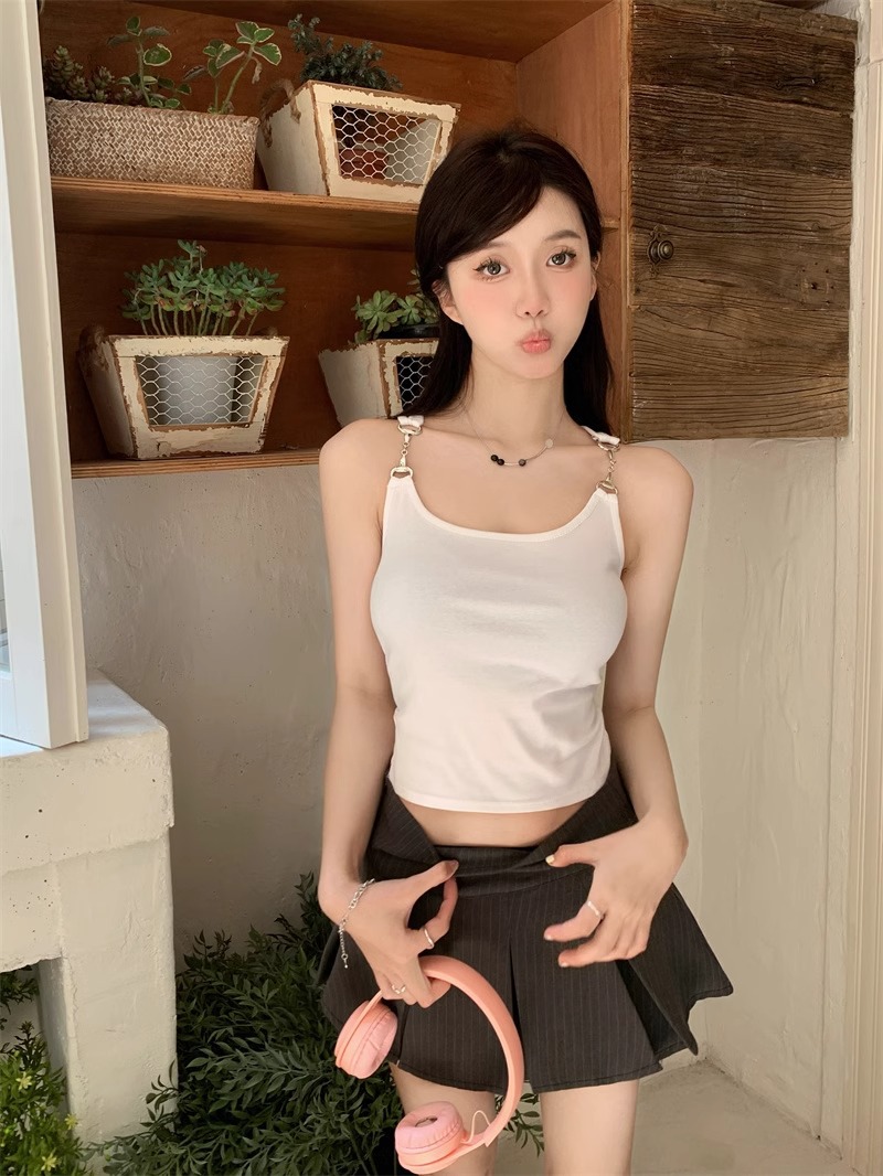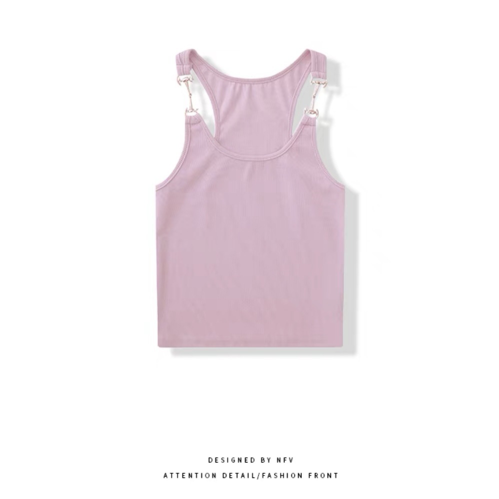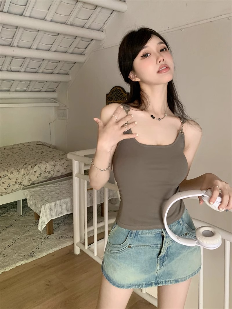 아메리칸 핫 걸 백리스 스포츠 슬링 I 자형 조끼 여성의 여름 내부와 외부 착용 짧은 뷰티 백 민소매 탑