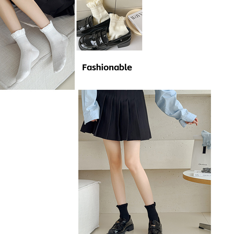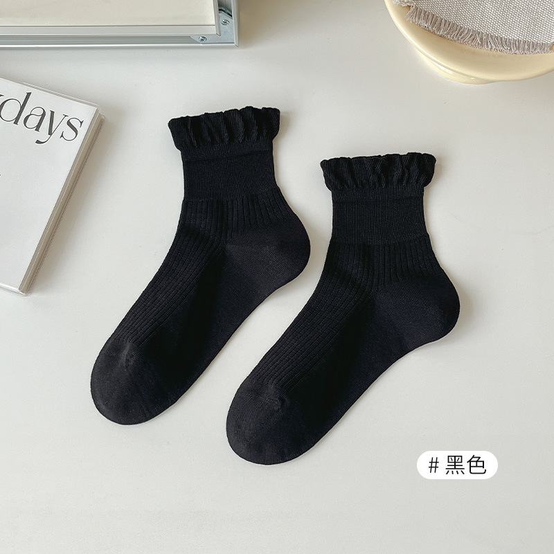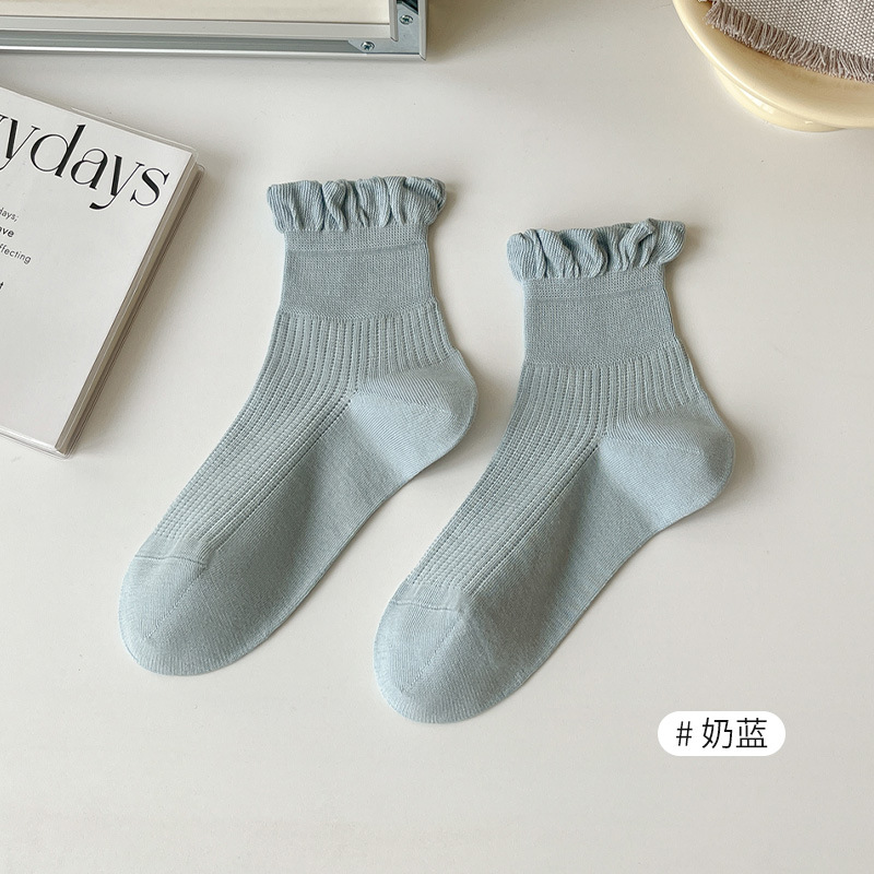 Jk 버블 양말 여성용 코튼 봄과 여름 짧은 얇은 in 트렌디 한 귀여운 일본식 단색 중반 송아지 흰색 레이스 여성용 양말스토어 가기