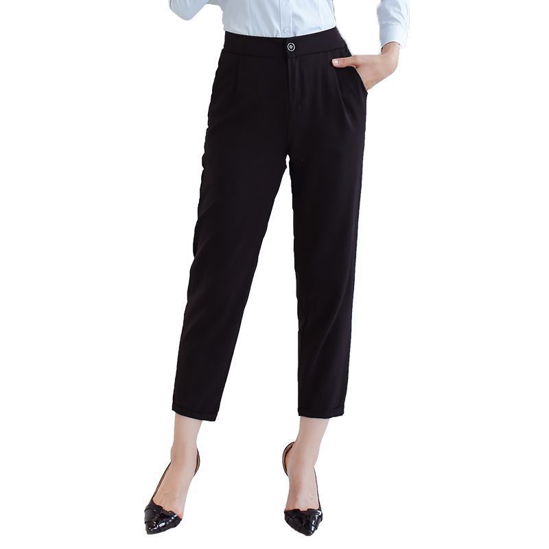 여성용 블랙 스트레이트 팬츠, 봄 여름 얇은 정장 정장 바지, 전문 바지, 바지, 신축성 있는 9부 바지, 작업 바지스토어 가기