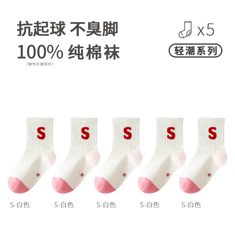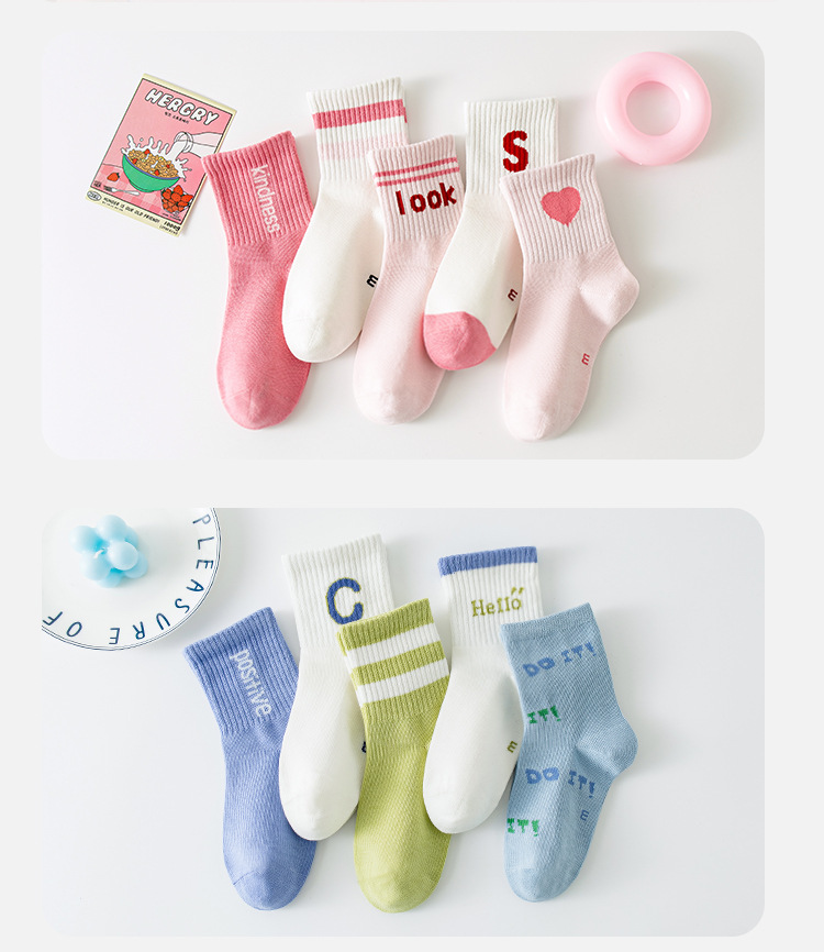 뼈없는 클래스 A 100% 면화 어린이 양말 봄 얇은 면화 소년 소녀 귀여운 중간 종아리 길이 양말 중년 어린이 학생