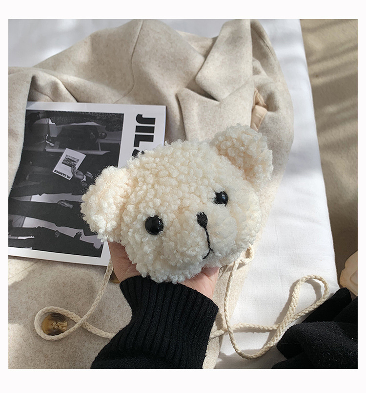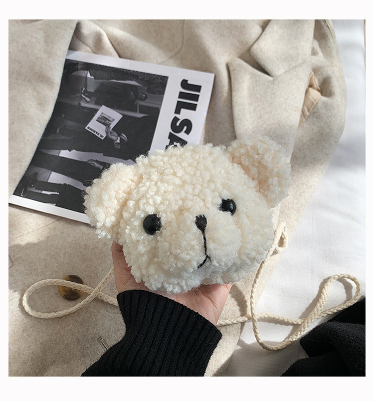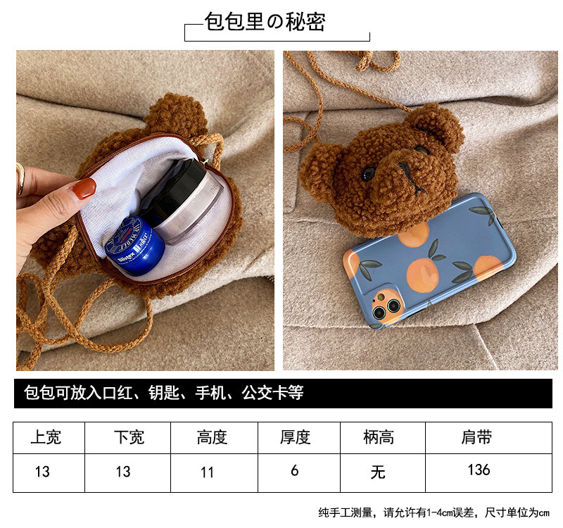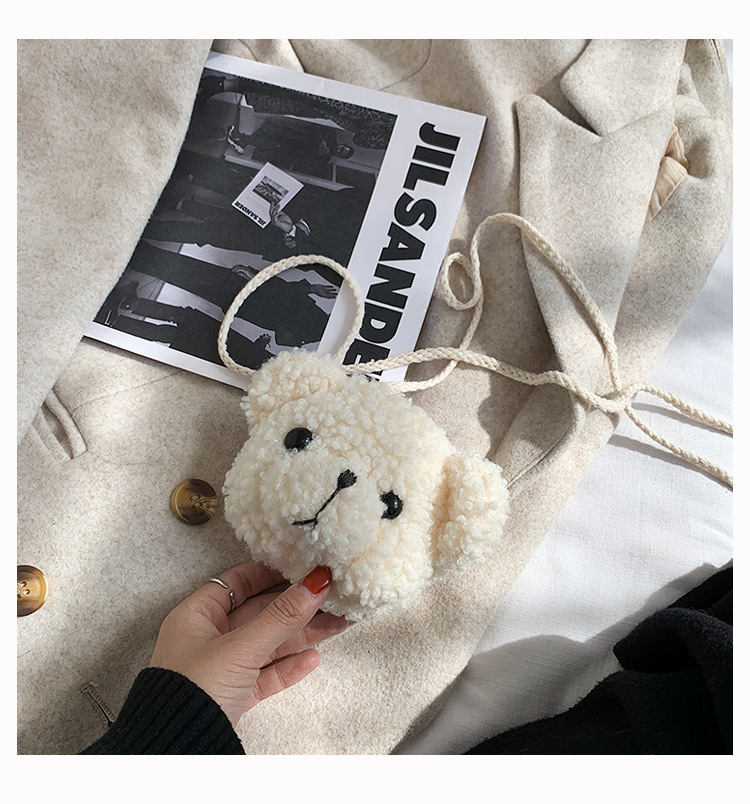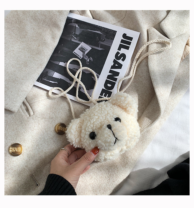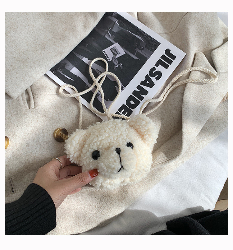 만화 곰 머리 메신저 가방 여성 봉제 가방 간단한 어깨 가방 학생 귀여운 소녀 심장 작은 어깨 가방
