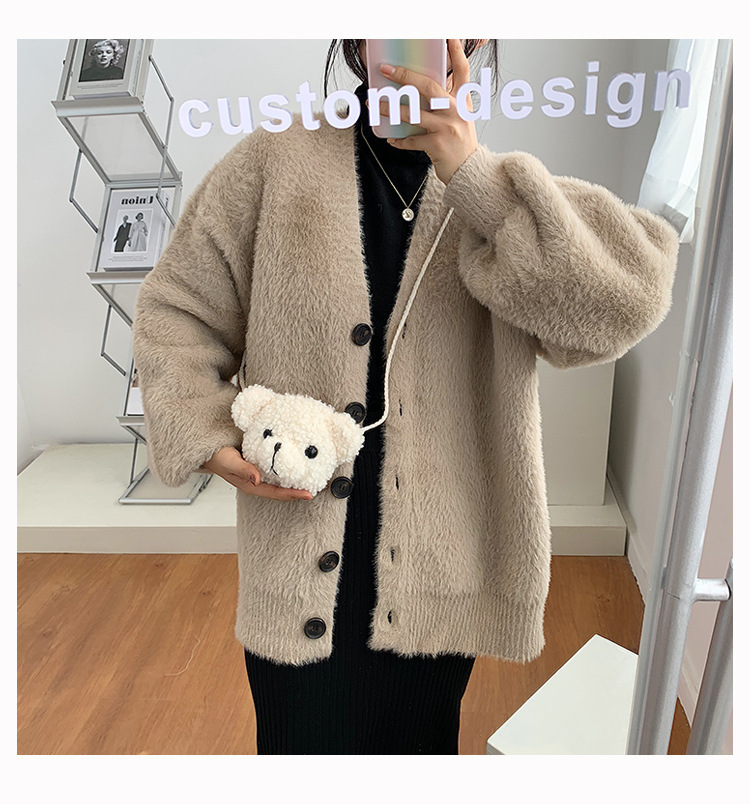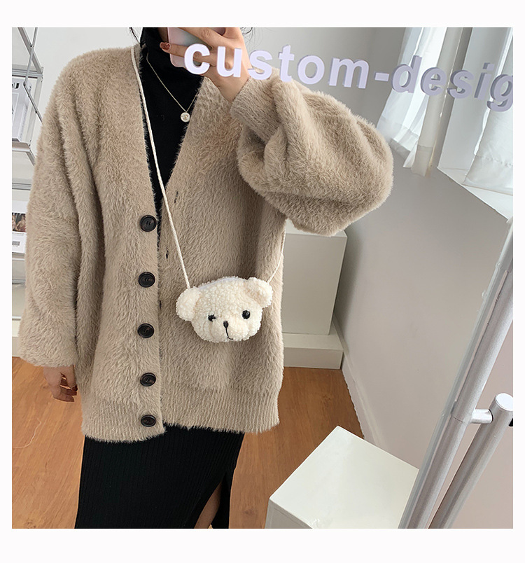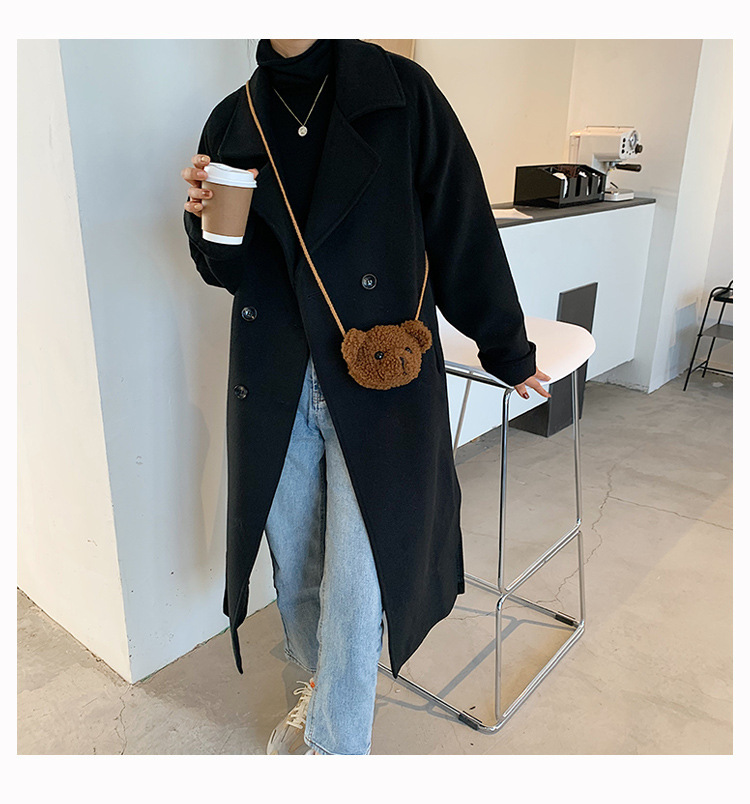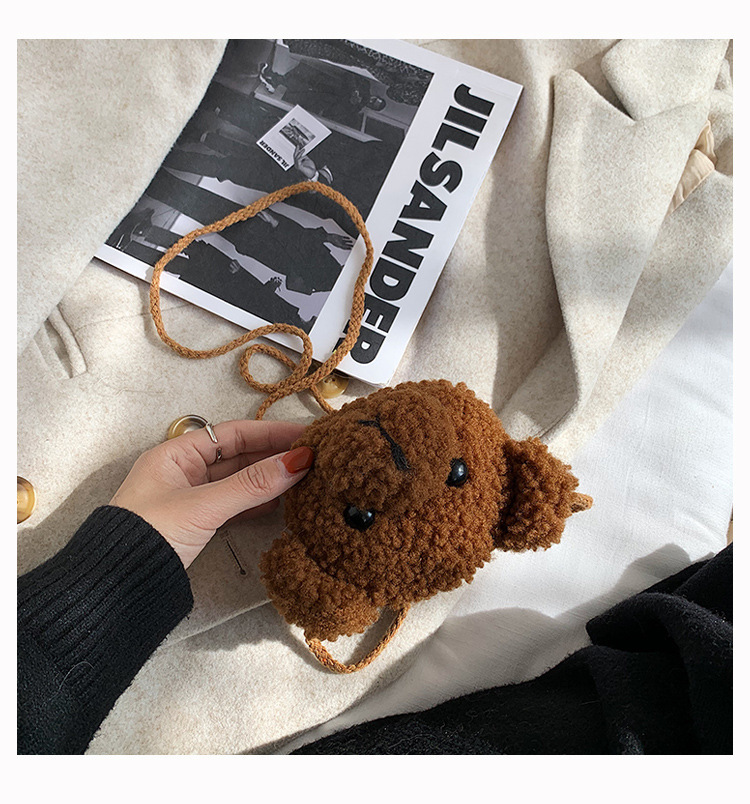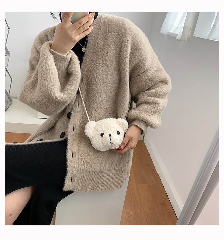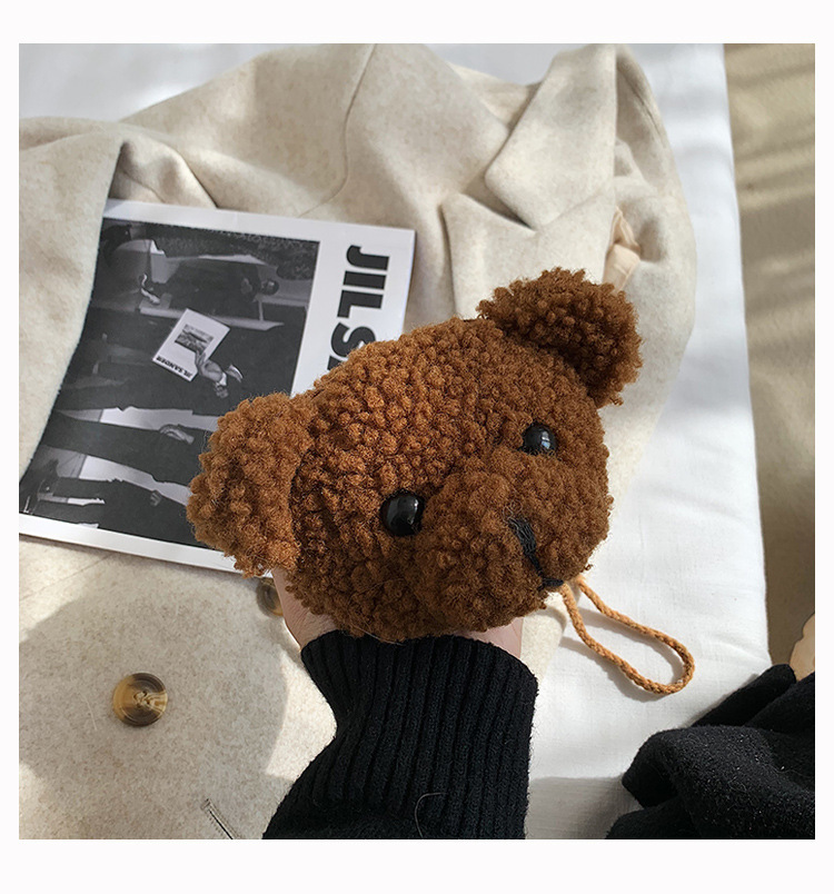 만화 곰 머리 메신저 가방 여성 봉제 가방 간단한 어깨 가방 학생 귀여운 소녀 심장 작은 어깨 가방
