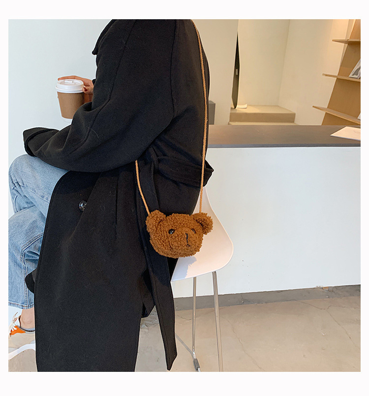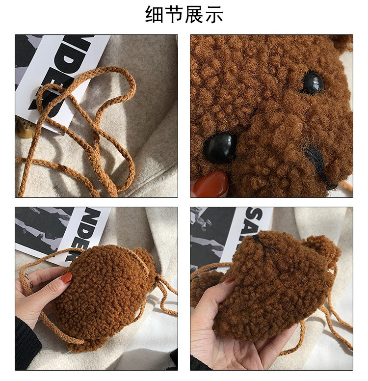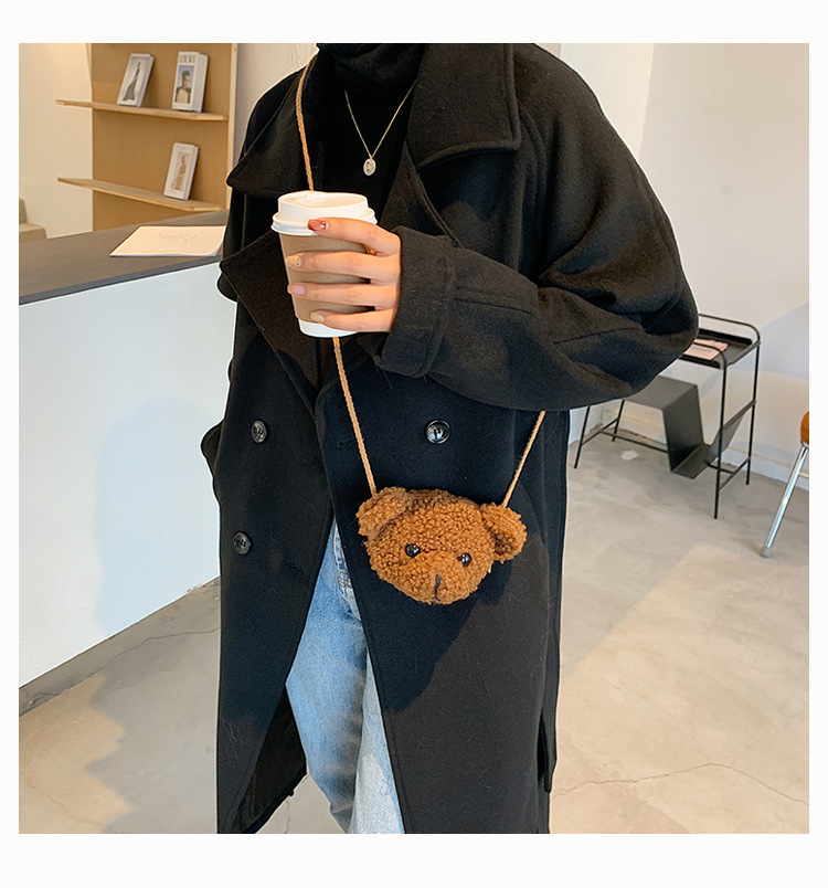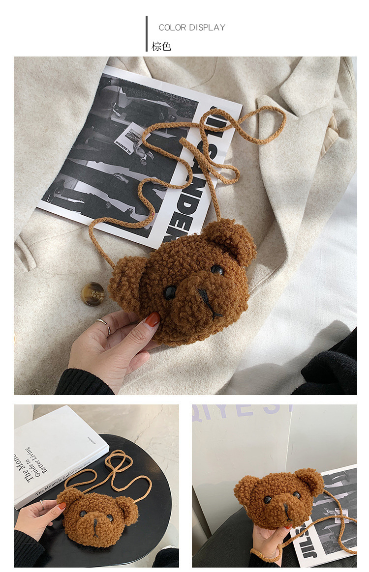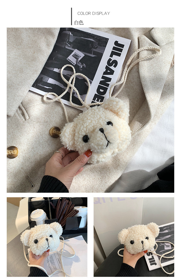 만화 곰 머리 메신저 가방 여성 봉제 가방 간단한 어깨 가방 학생 귀여운 소녀 심장 작은 어깨 가방스토어 가기