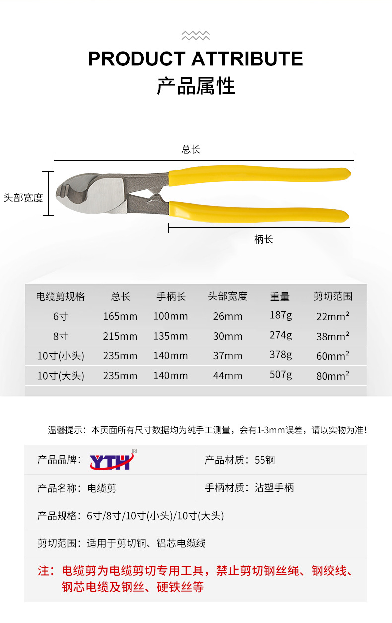 케이블 커터 6inch 전선 절단기 도구 전선 절단 펜치 전선 절단 가위 전기공용 전선 절단기 전선 피복 제거기