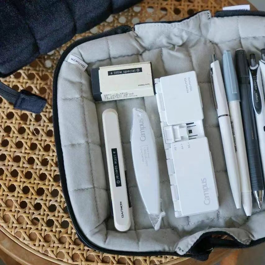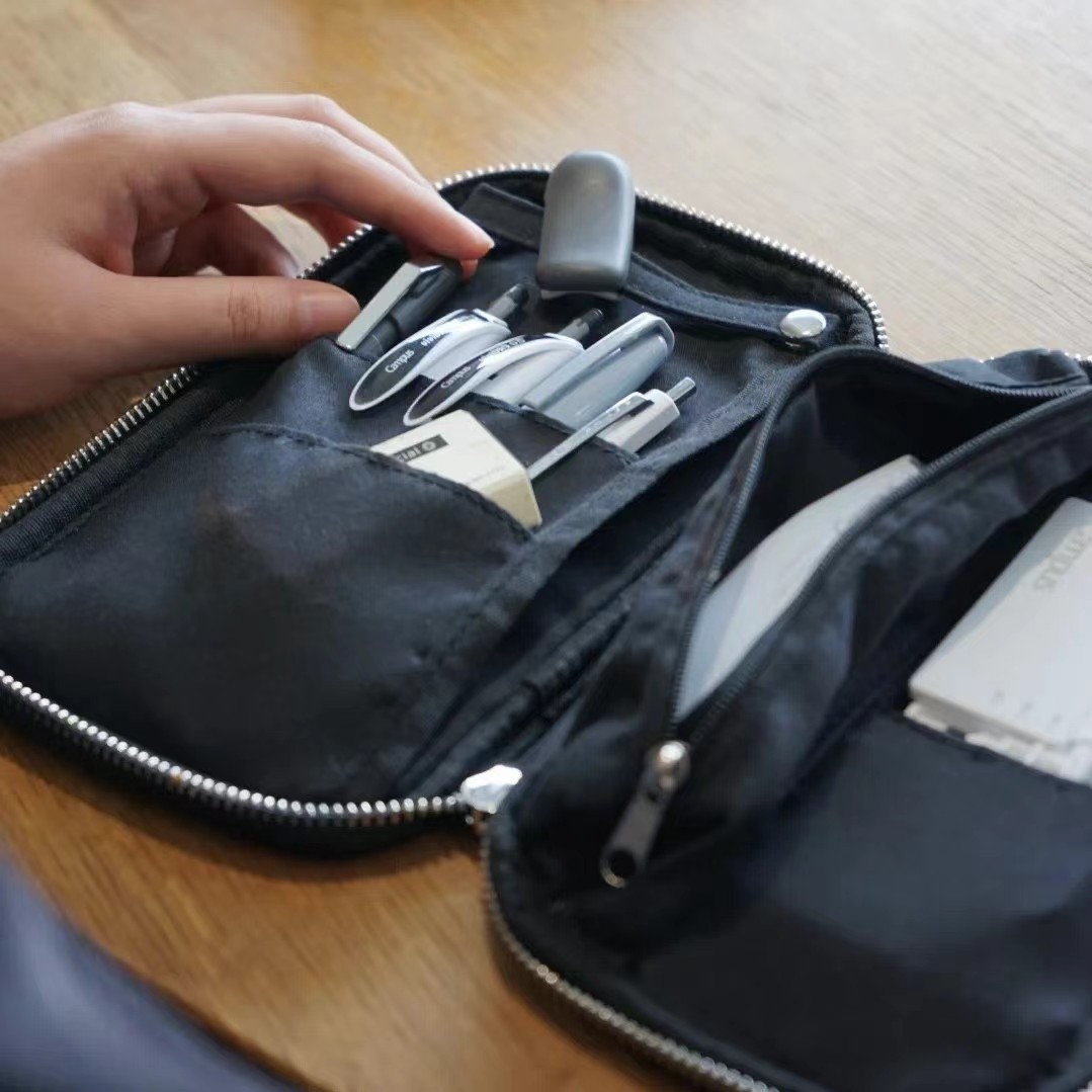 새로운 일본 kokuyo 국가 명성 검은 간단한 연필 케이스 팬케이크 베개 베개 가방 서 문구 상자 대용량스토어 가기