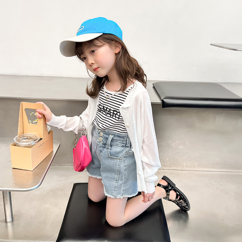 여아용 자외선 차단 의류, 아동용 코트, 가볍고 통기성이 좋은 여름 양산, 얇은, 큰 아동용 베이비 가디건, 새로운 아이스 실크스토어 가기