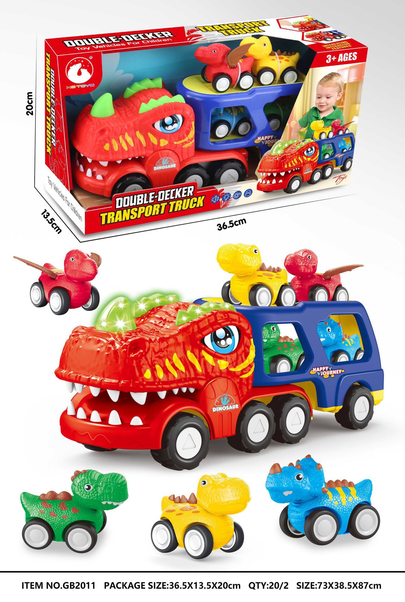 GB2011恐龙惯性双层车(灯光音乐)(4只回力恐龙):展示盒