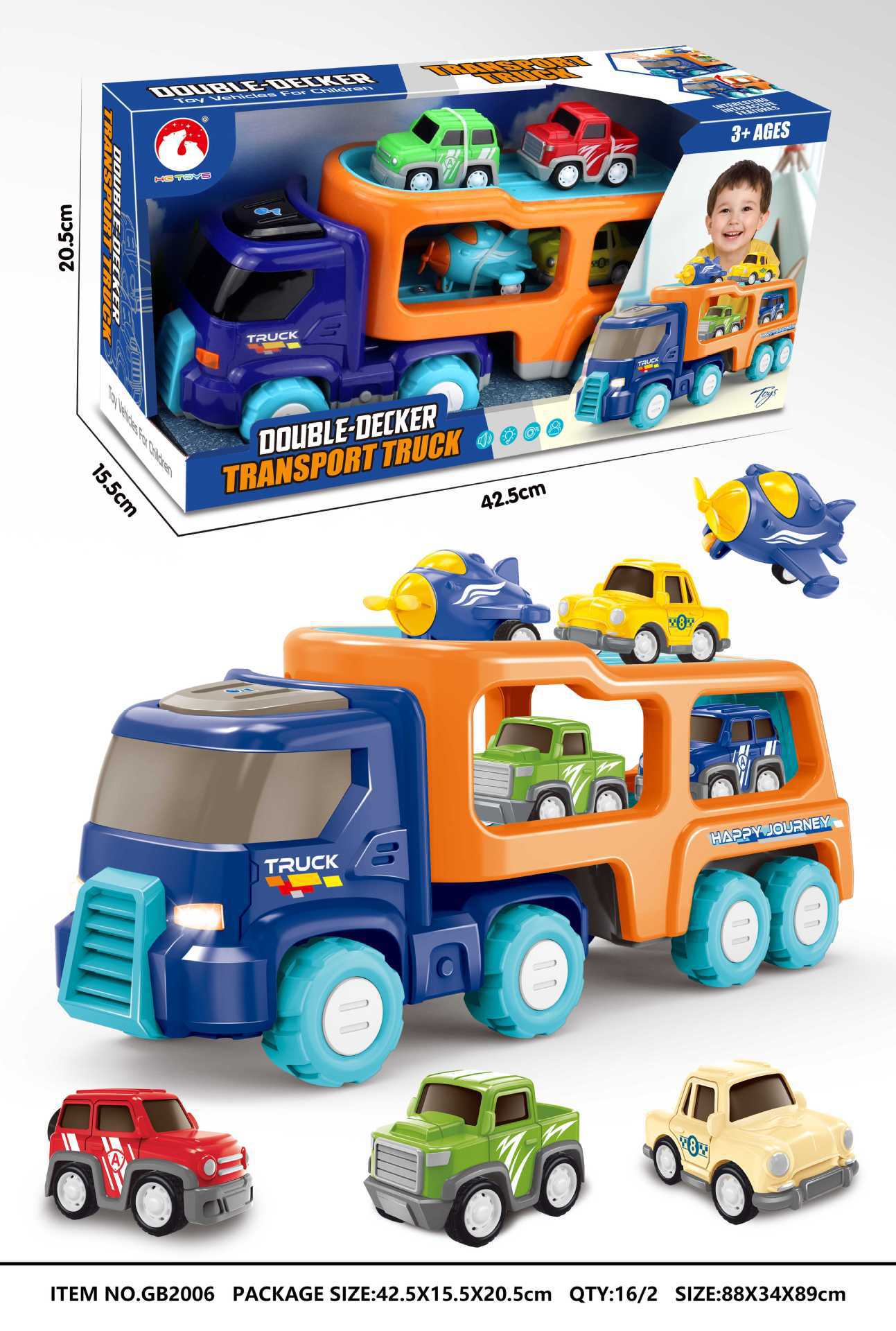 GB2009小工程惯性双层车(灯光音乐)(4只回力车仔):展示盒