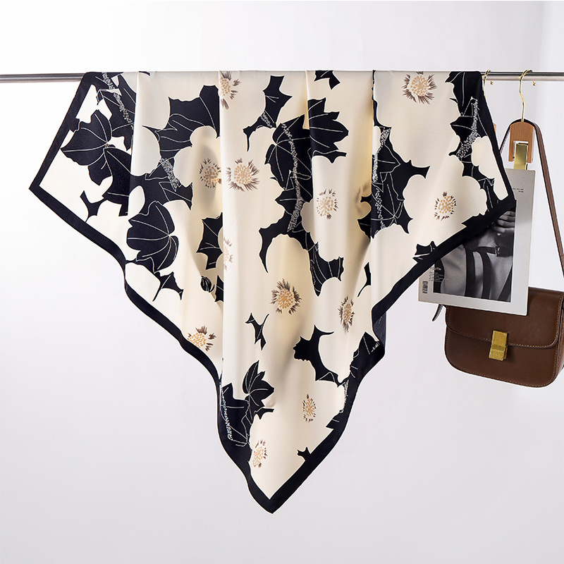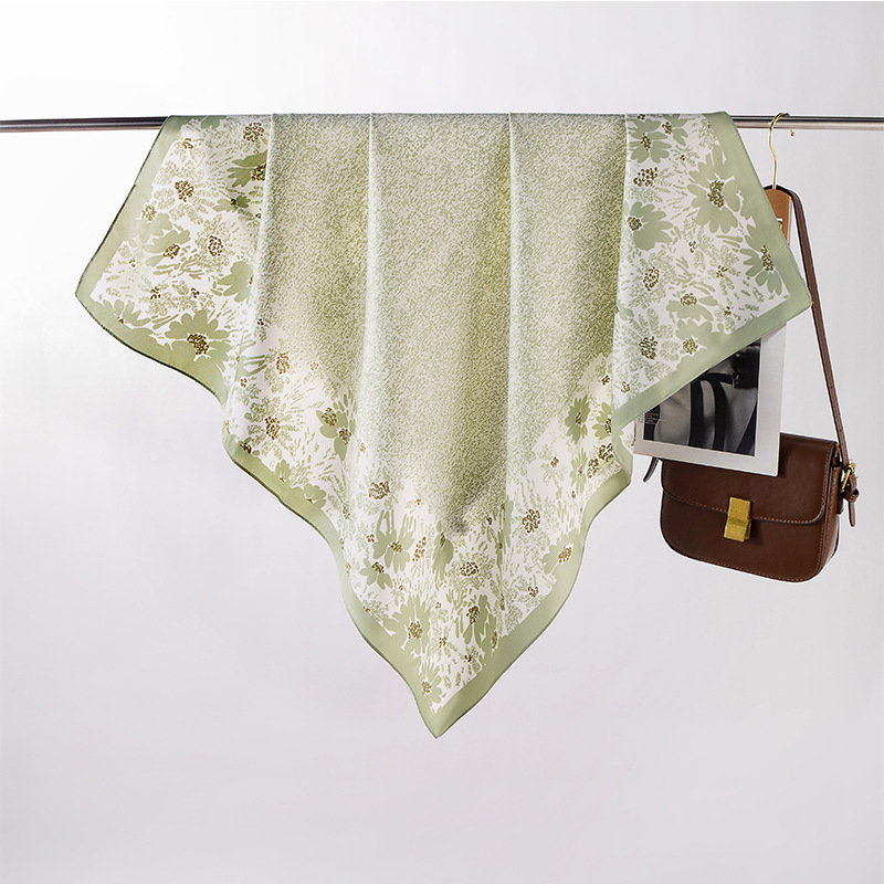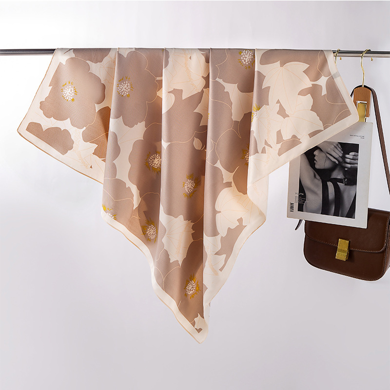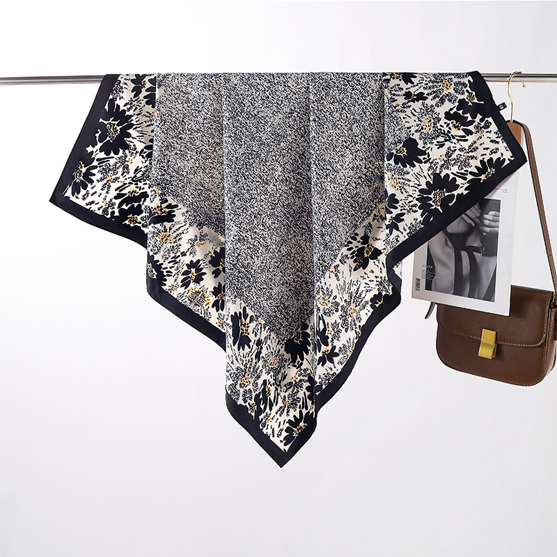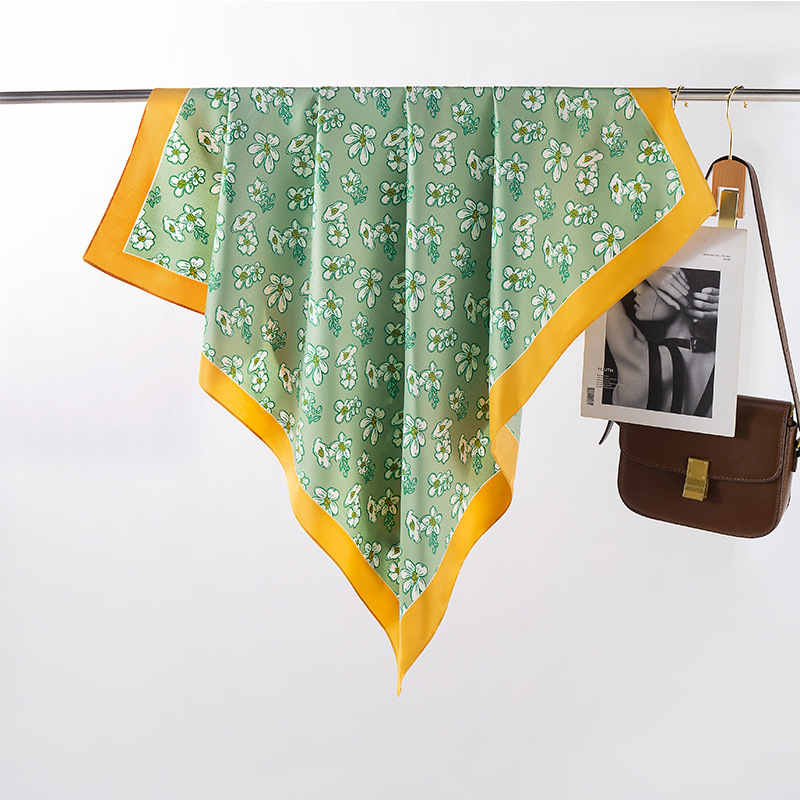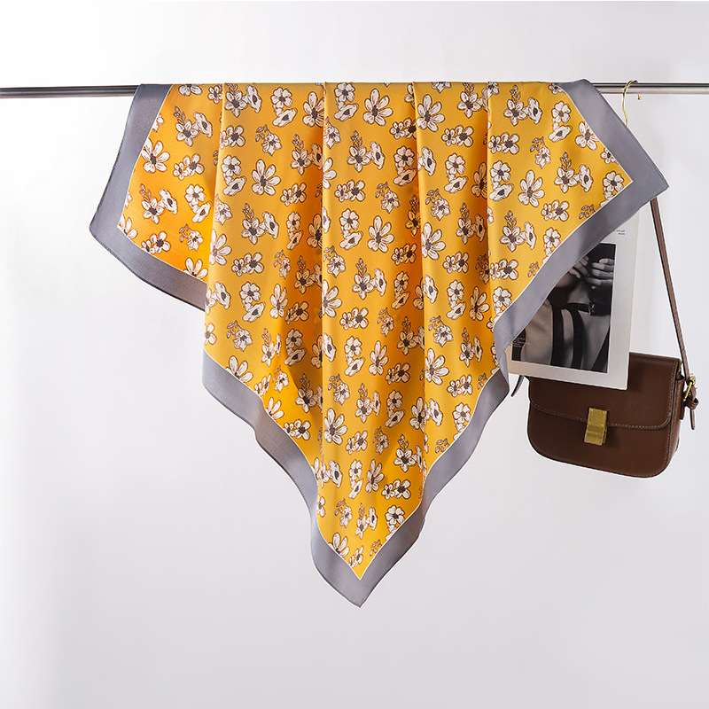 작은 꽃과 일치하는 새로운 한국 스타일의 간단한 예술적 색상 90 사각형 스카프 봄과 가을 얇은 올 매치 실크 스카프 목 목도리