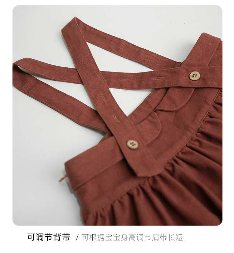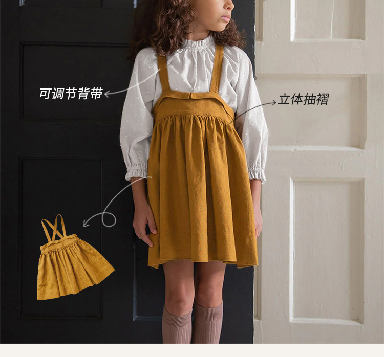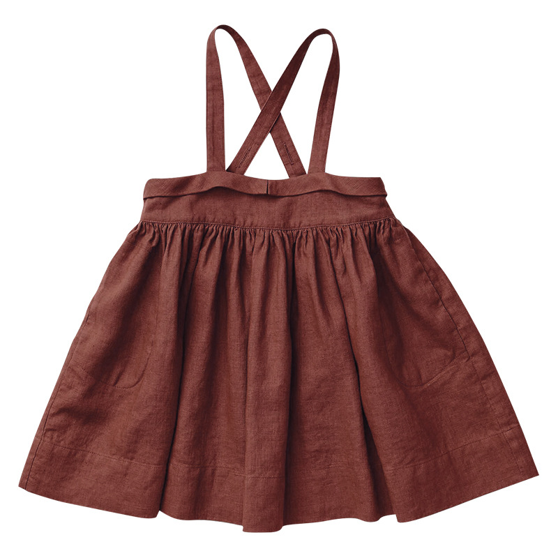 어린이 원피스 달콤한 귀엽은면과 린넨 단색 서스펜더 스커트 소녀의 일본 대학 스타일 크로스 버클 스커트 아기 소녀
