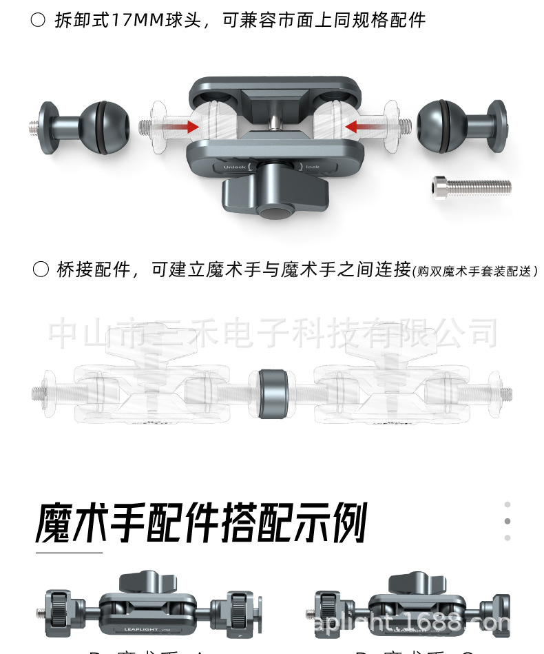 Lepley 금속 매직 팔 브래킷 확장 전화 피트 카메라 액세서리 유니버설 모니터 17mm 공스토어 가기