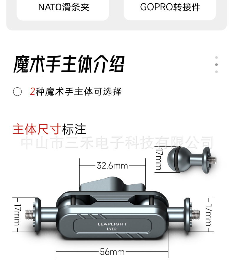 • LYE14: 콜드 슈 플러그 + 매직 핸드 + 액션 카메라 커넥터