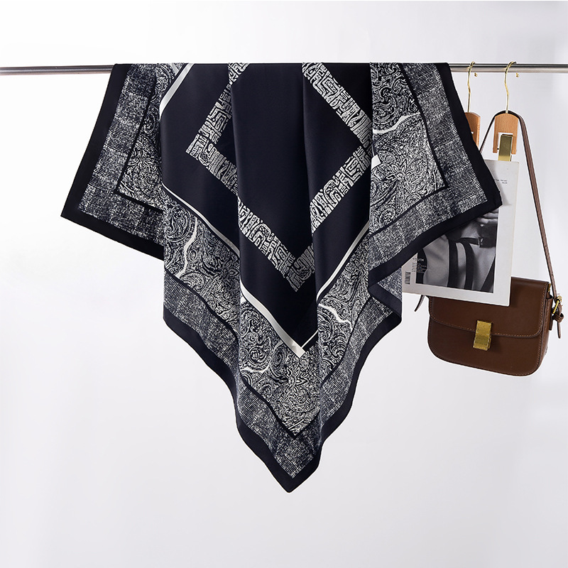 인공 실크 인쇄 사각형 스카프 2024 한국 스타일 새로운 패션 90 스퀘어 스카프 봄과 가을 선물 고급 올 매치 엄마 목도리