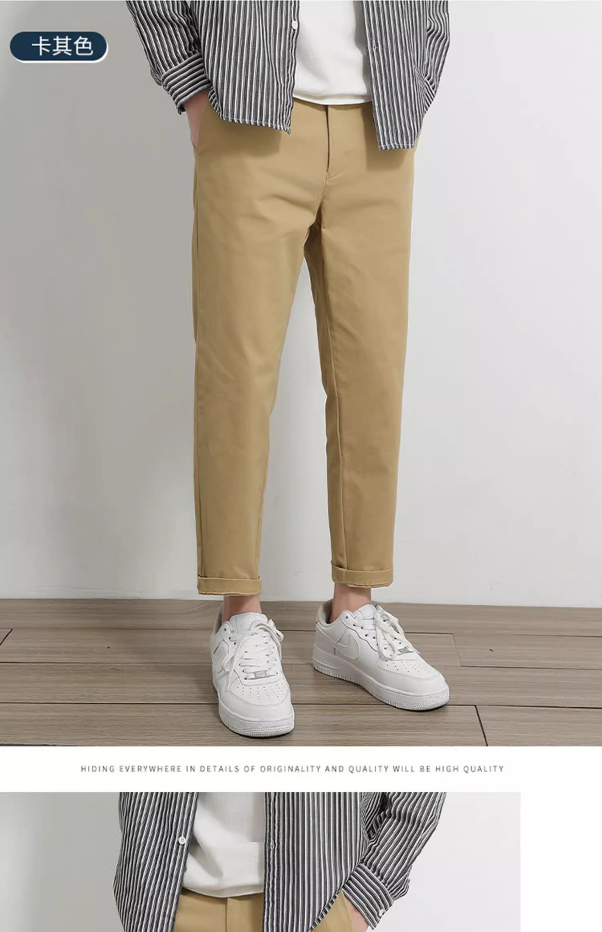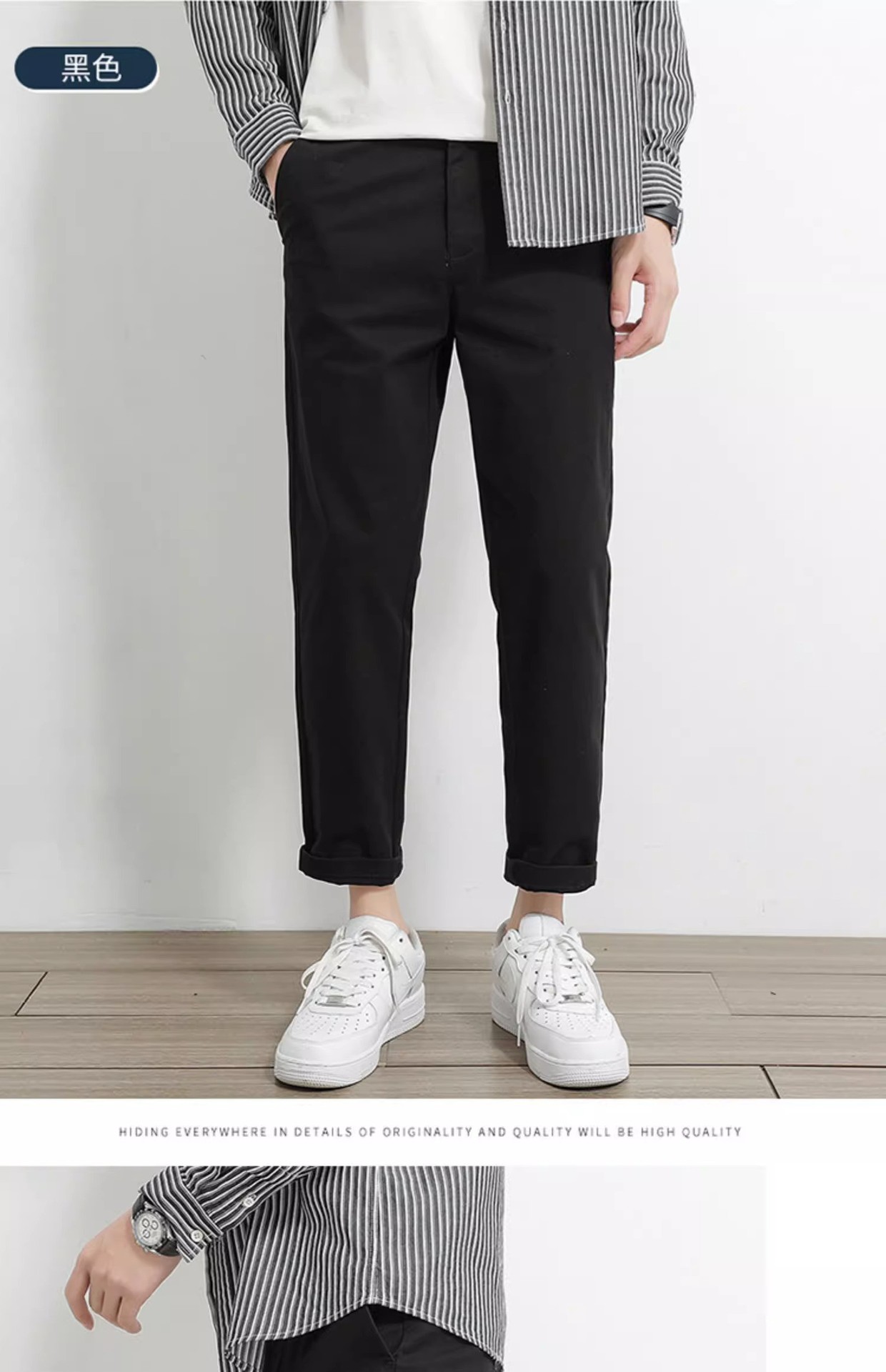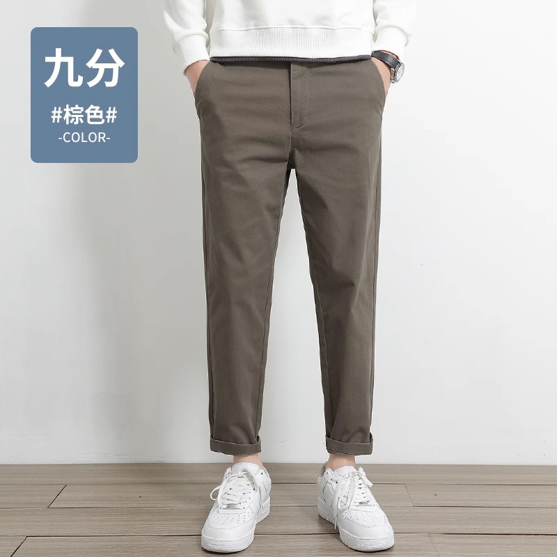 순면 캐주얼 팬츠 남성용 스트레이트 루즈핏 신축성 2024 봄 가을 9부 바지 남성용 비즈니스 캐주얼 팬츠