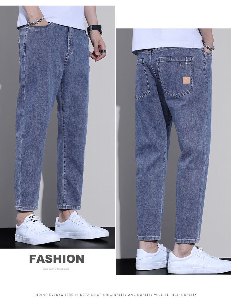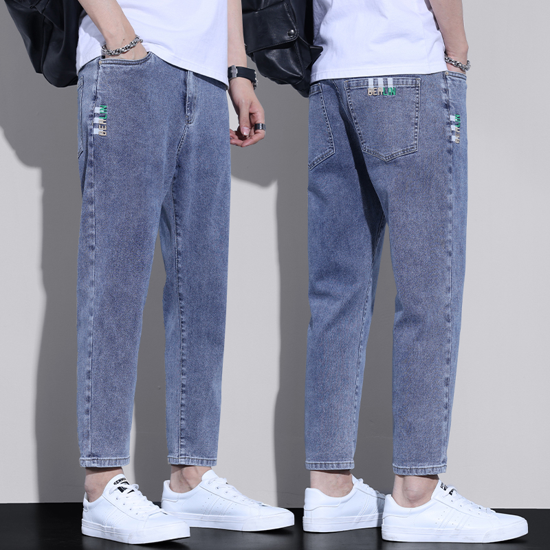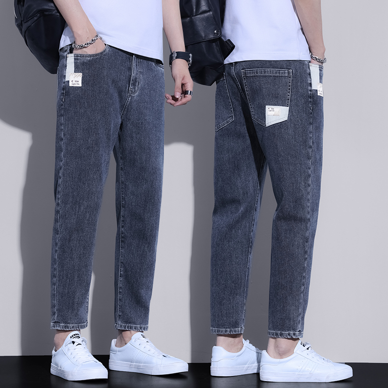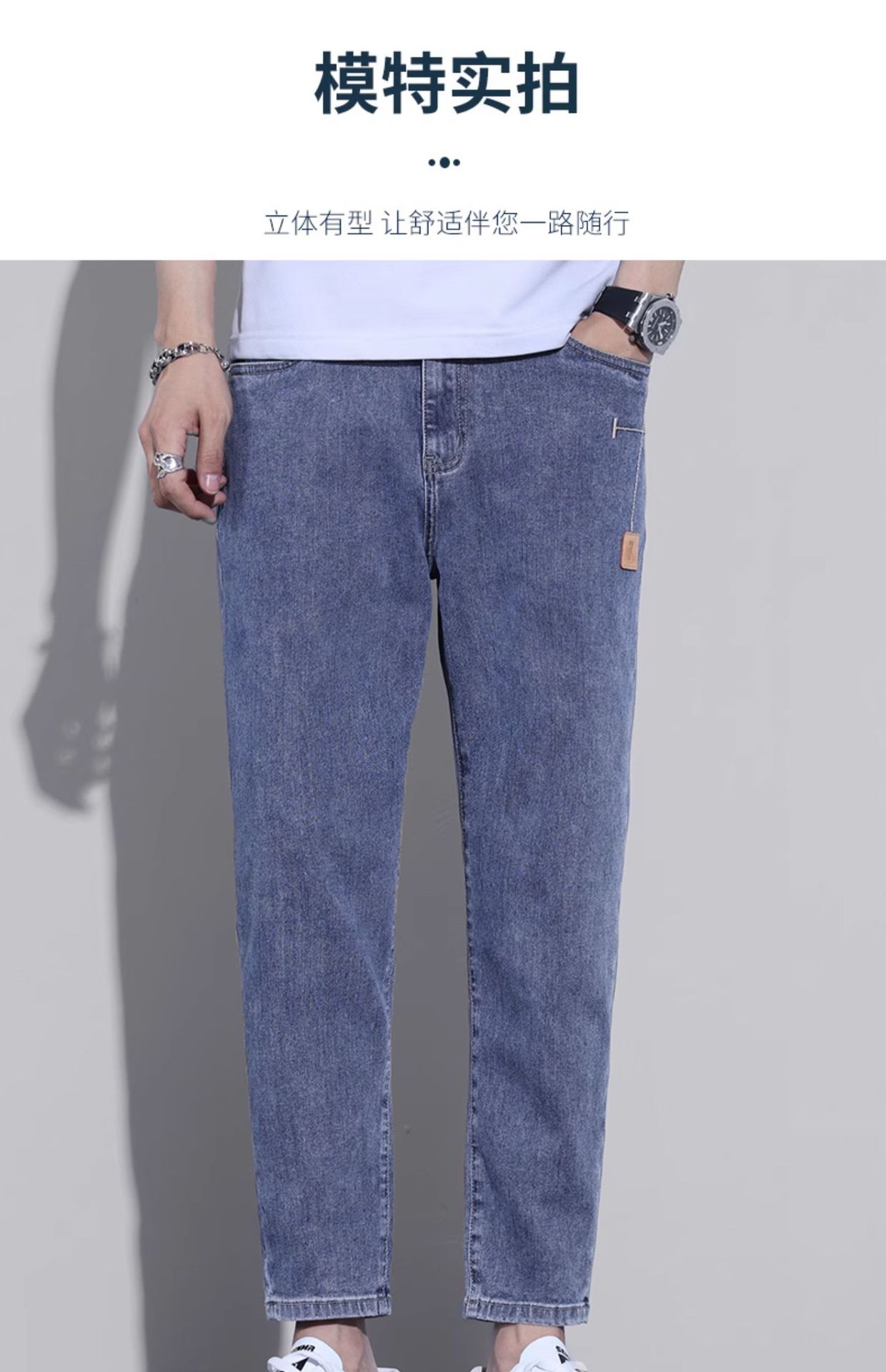 크롭 진 청바지 남성용 트렌디 한 남성용 느슨한 스트레이트 스트레치 캐주얼 봄 긴 바지 2024 봄과 가을 뉴스토어 가기