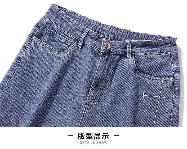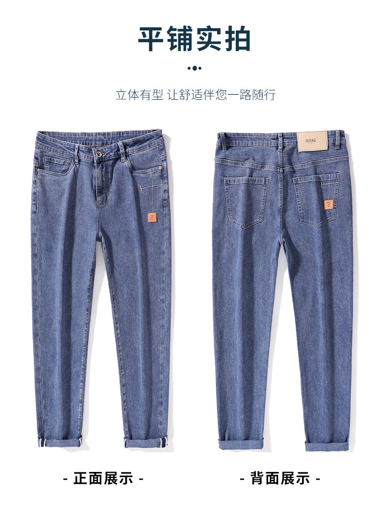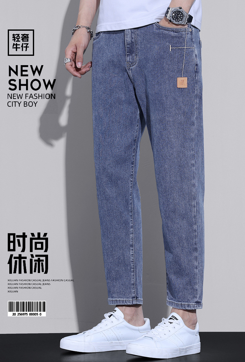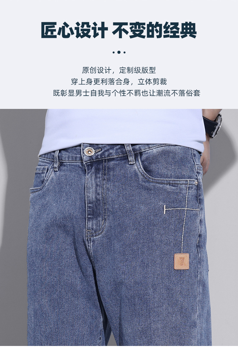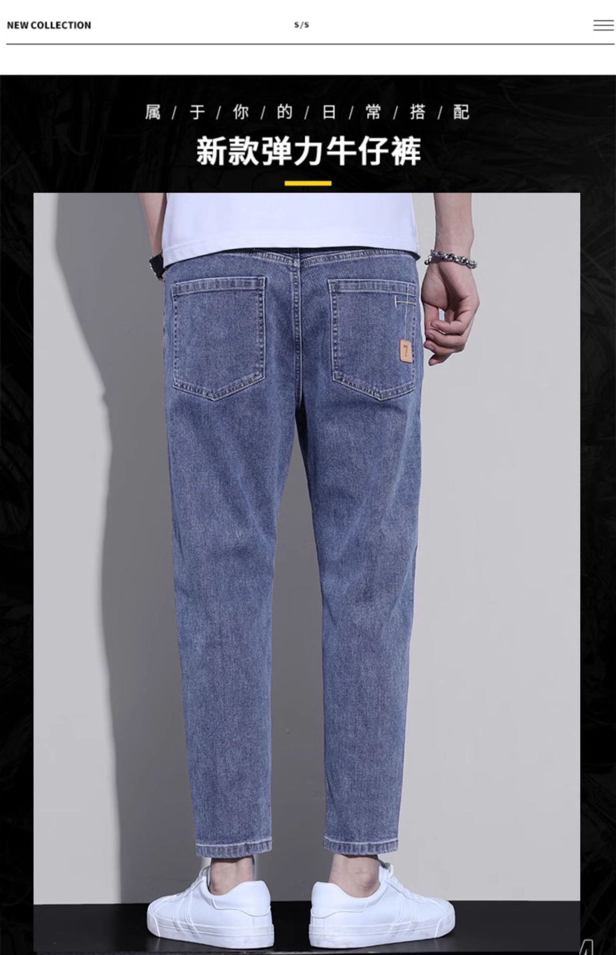 크롭 진 청바지 남성용 트렌디 한 남성용 느슨한 스트레이트 스트레치 캐주얼 봄 긴 바지 2024 봄과 가을 뉴스토어 가기