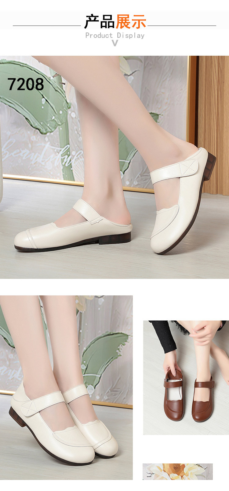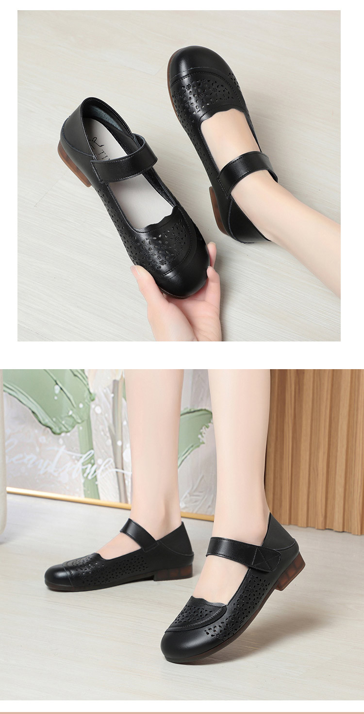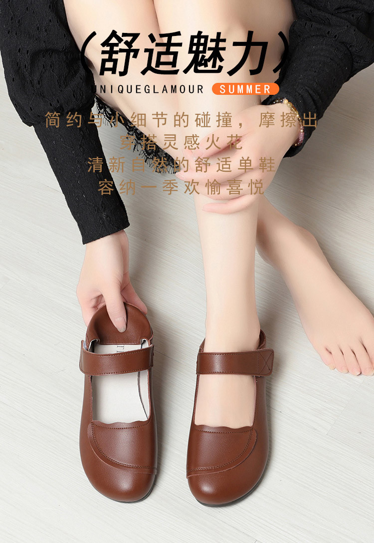 새로운 봄과 여름 평면 싱글 레이어 신발 2024 엄마를위한 버클이 달린 여성 신발 부드러운 가죽 부드러운 바닥 가죽 신발 노인 편안한 여성 신발