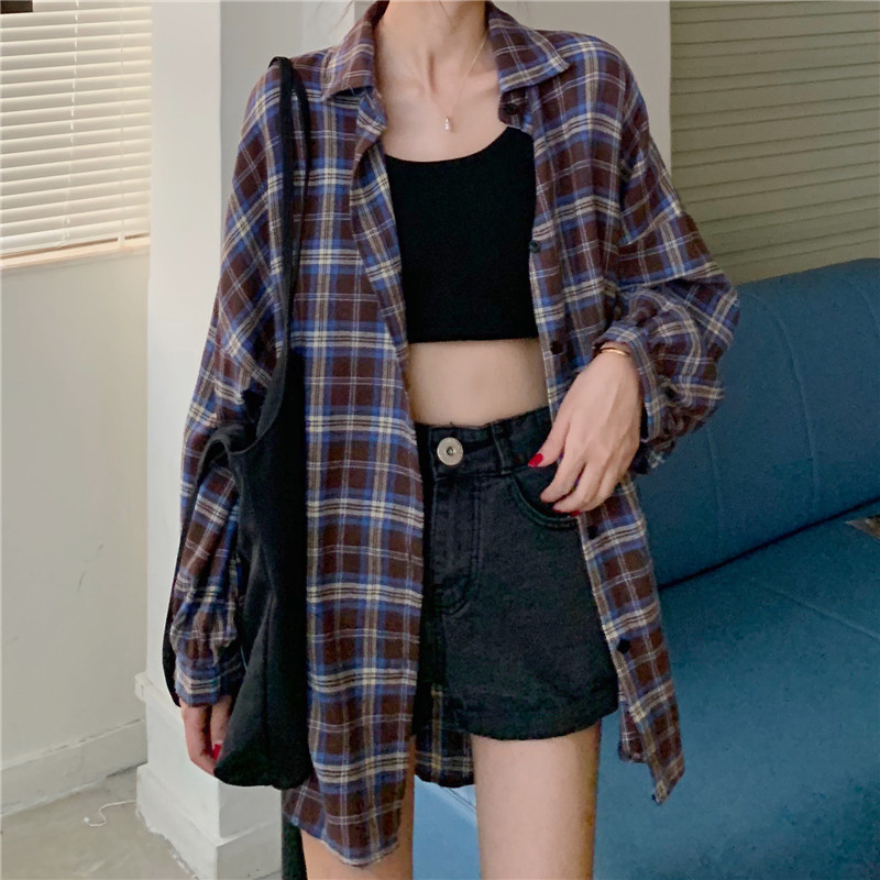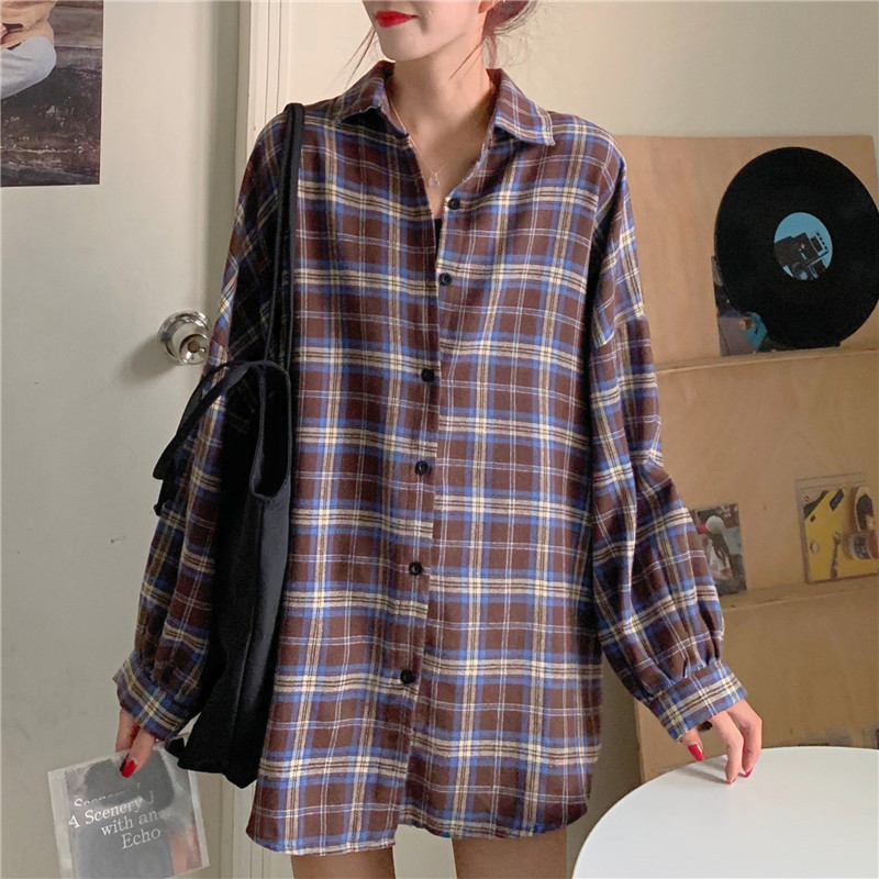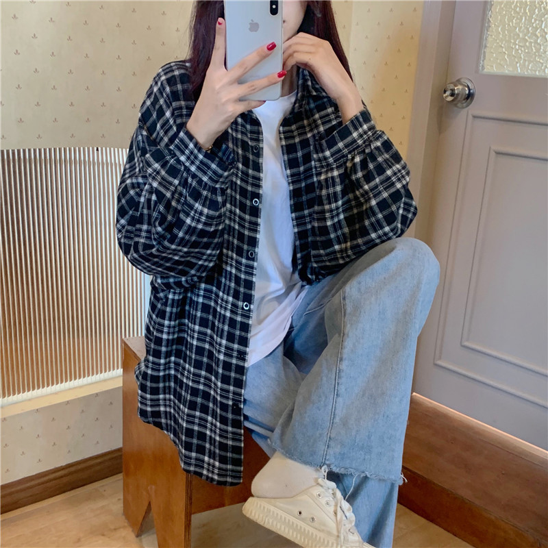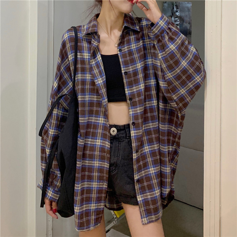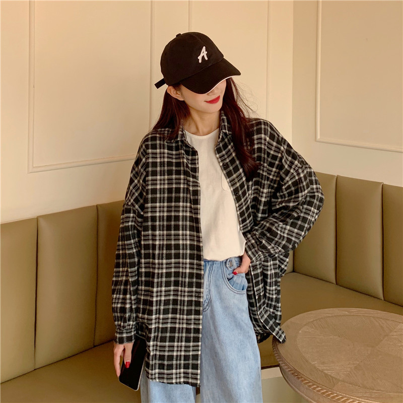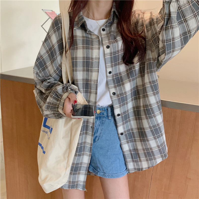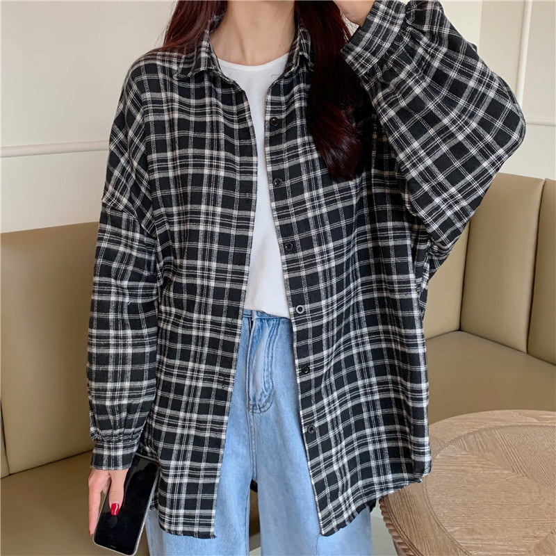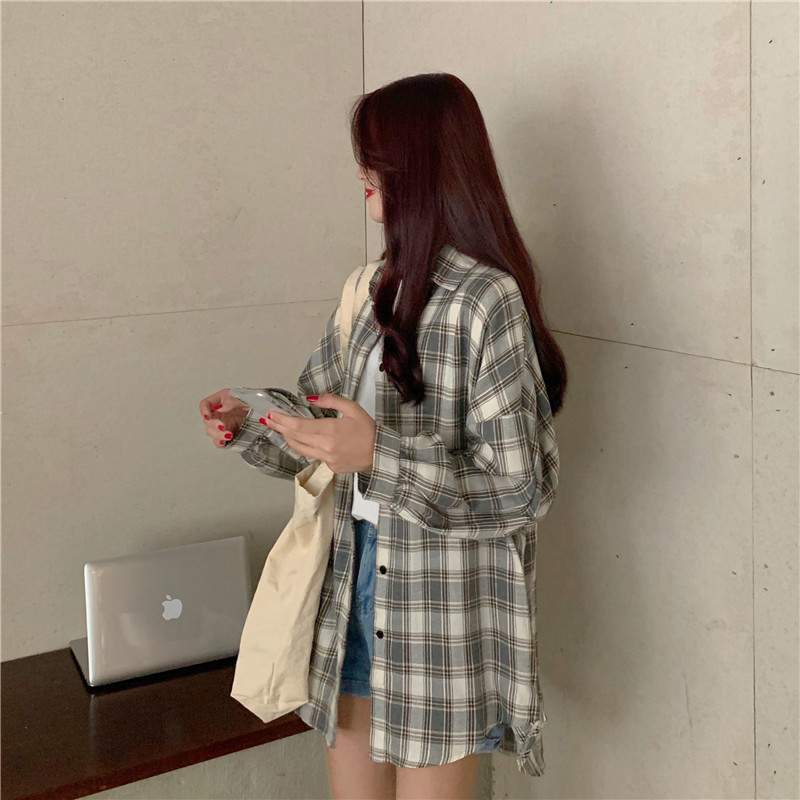 격자 무늬 셔츠 여성 재킷 2024 이른 봄 새로운 디자인 틈새 루즈 셔츠 긴팔 탑스토어 가기