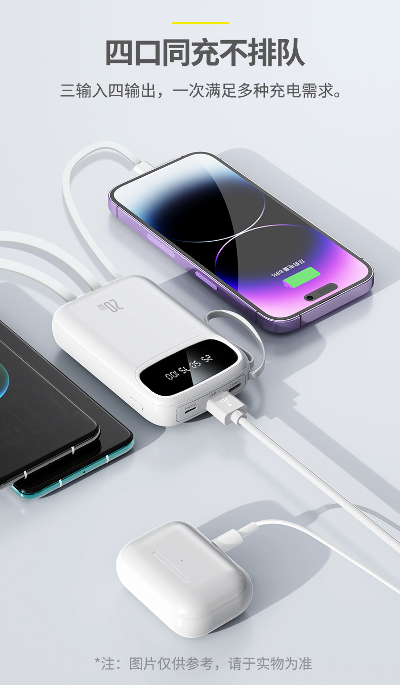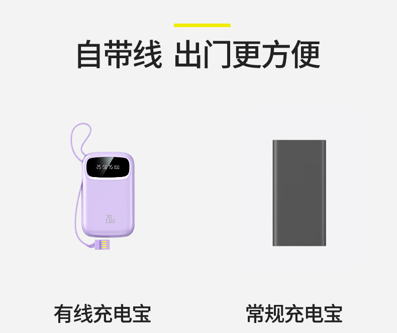 3C 인증 보조배터리, 초고속 충전, 대용량, 초슬림, 컴팩트, 휴대용, 케이블 내장, 공식 정품 플래그십스토어 가기