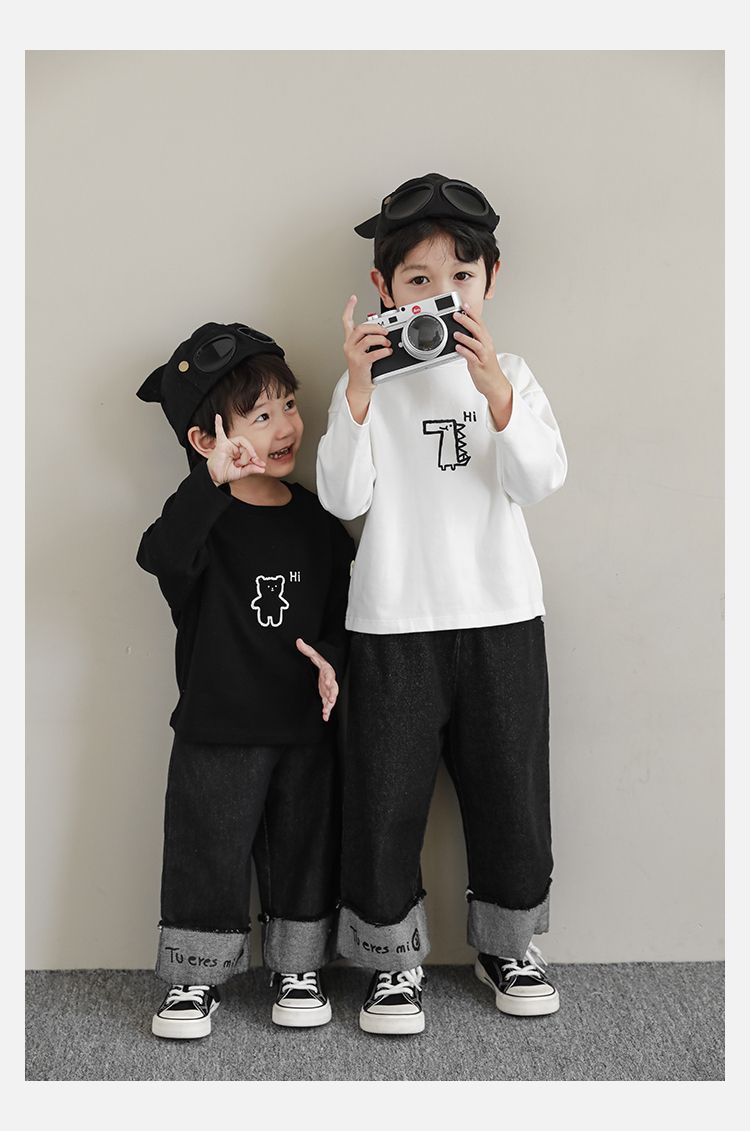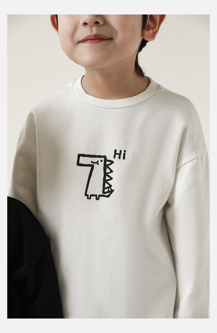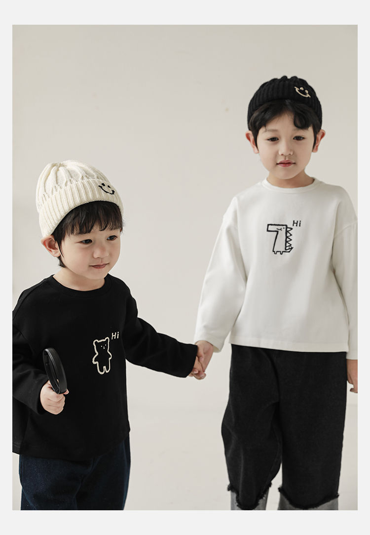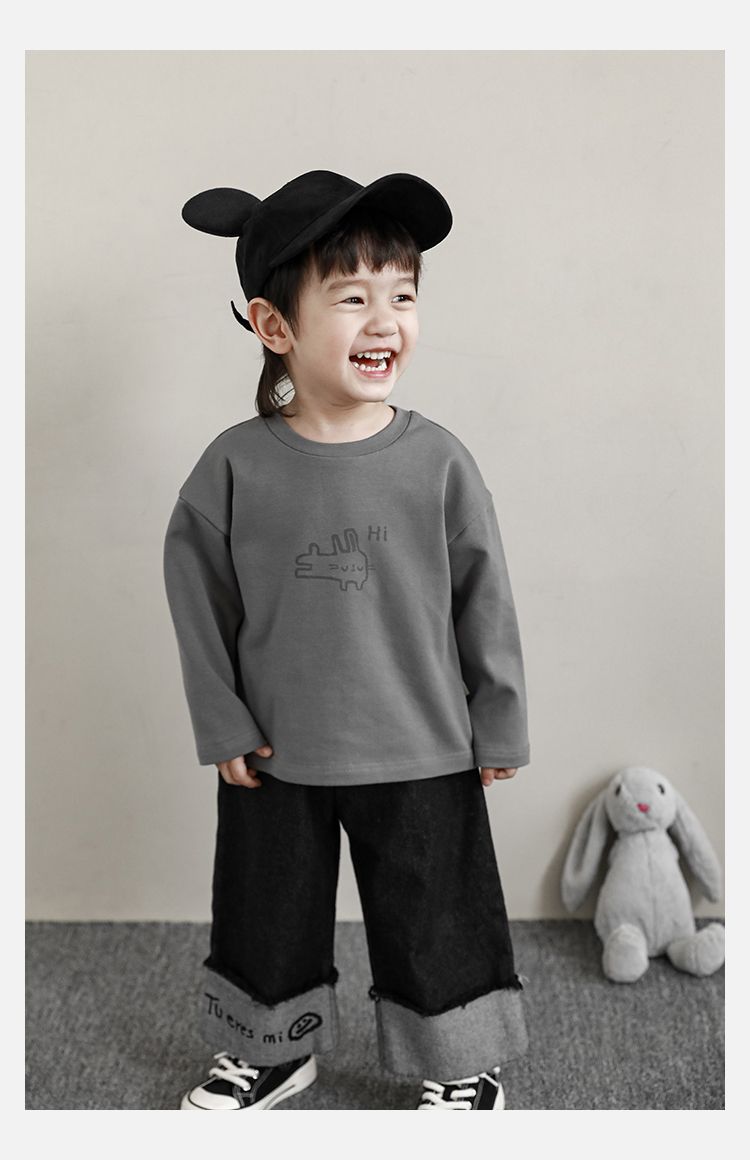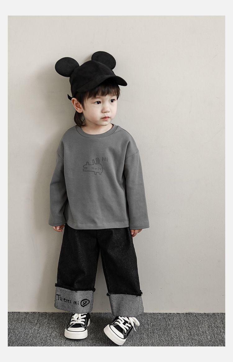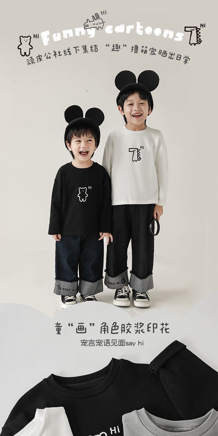 Wulibuyi 소년의 만화 인쇄 느슨한 둥근 목 풀오버 캐주얼 티셔츠 어린이 패션 긴팔 티셔츠 탑