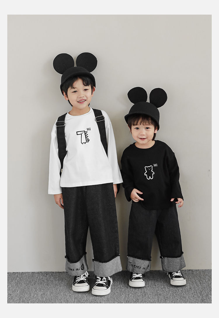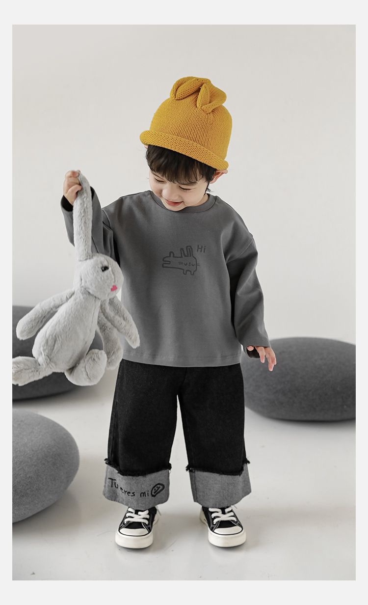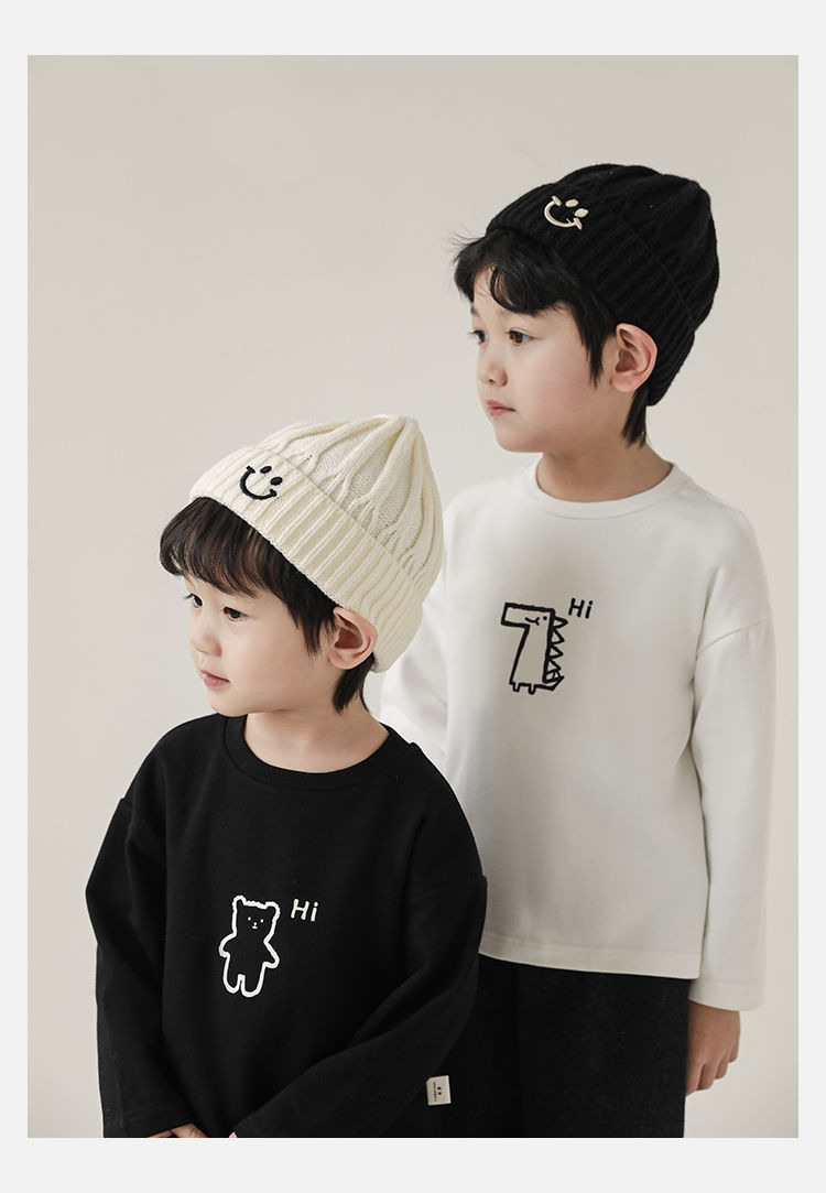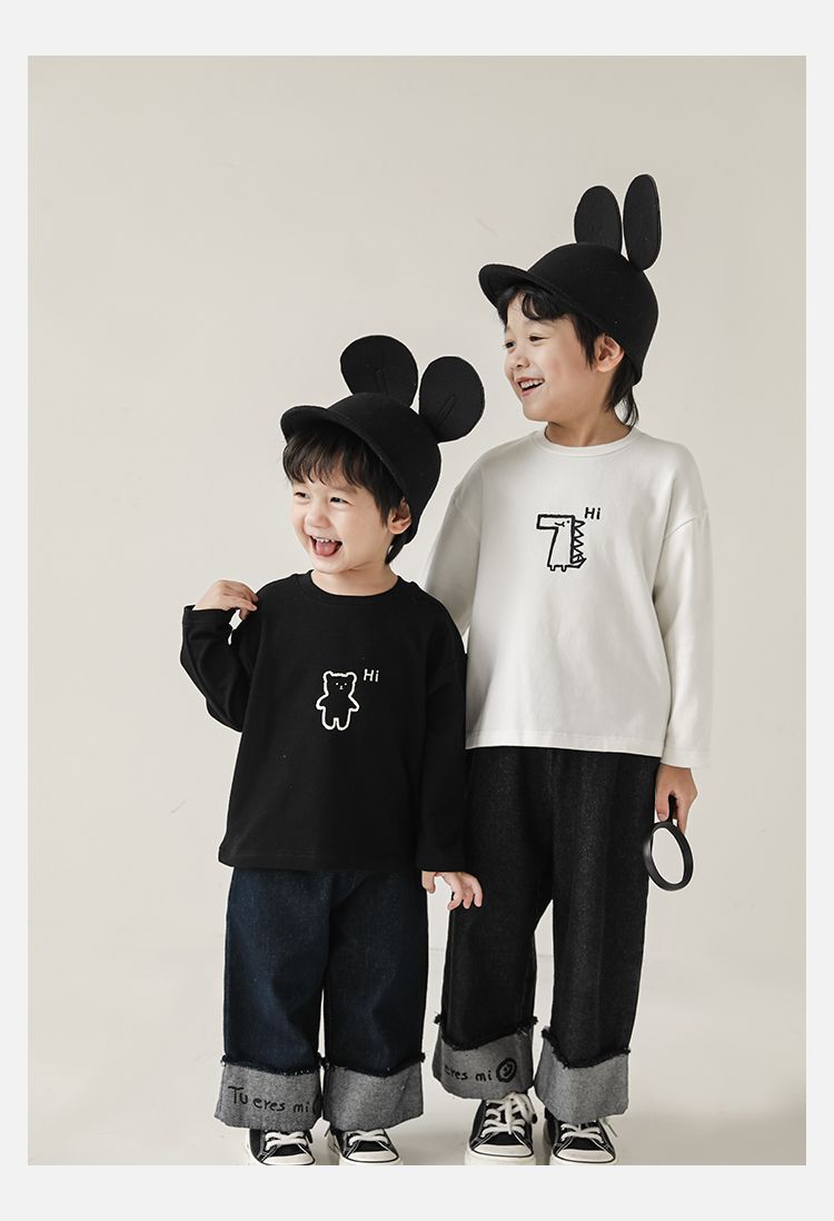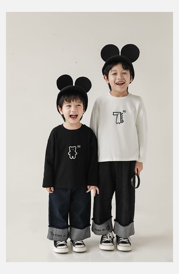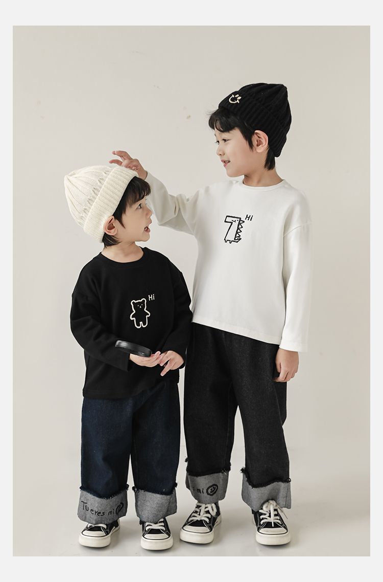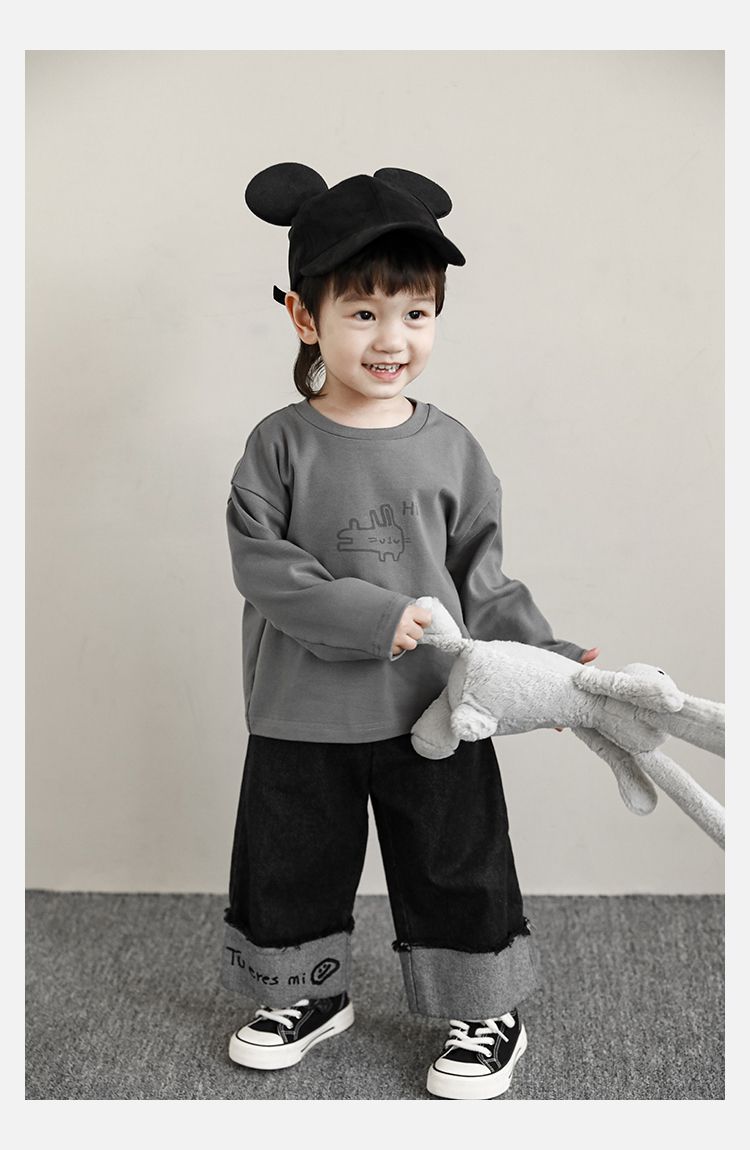 Wulibuyi 소년의 만화 인쇄 느슨한 둥근 목 풀오버 캐주얼 티셔츠 어린이 패션 긴팔 티셔츠 탑
