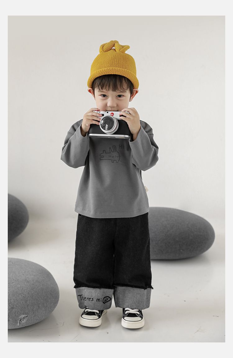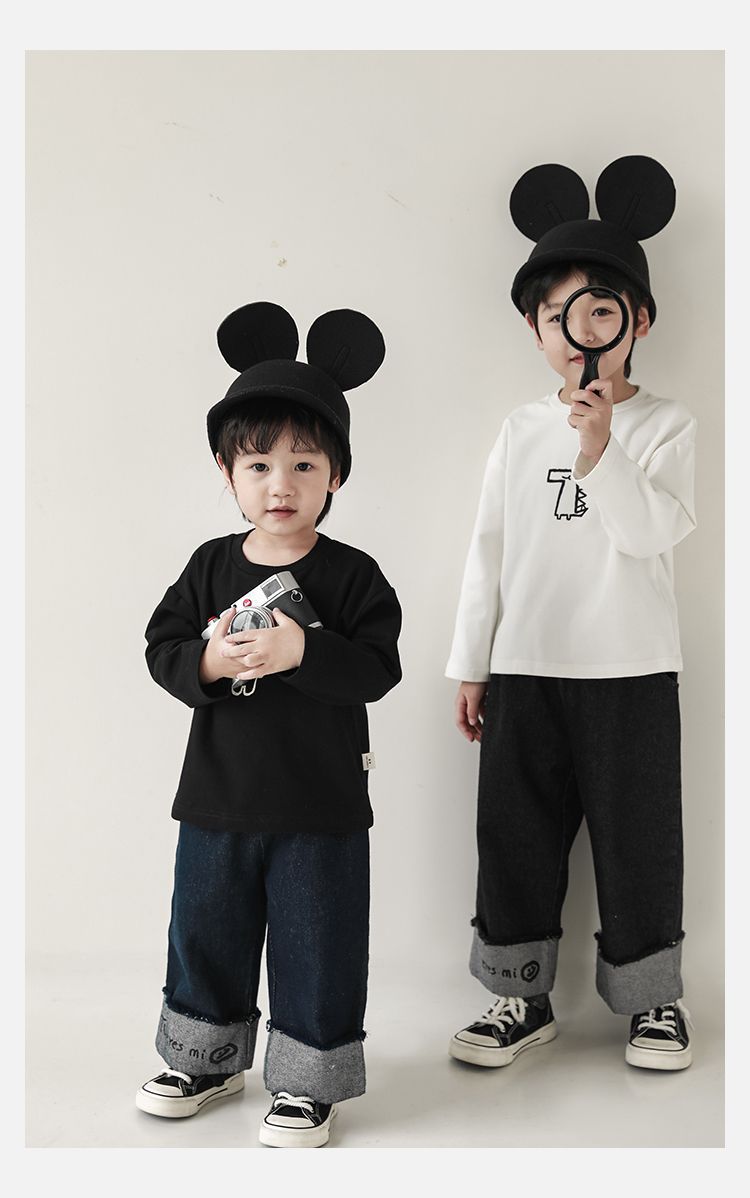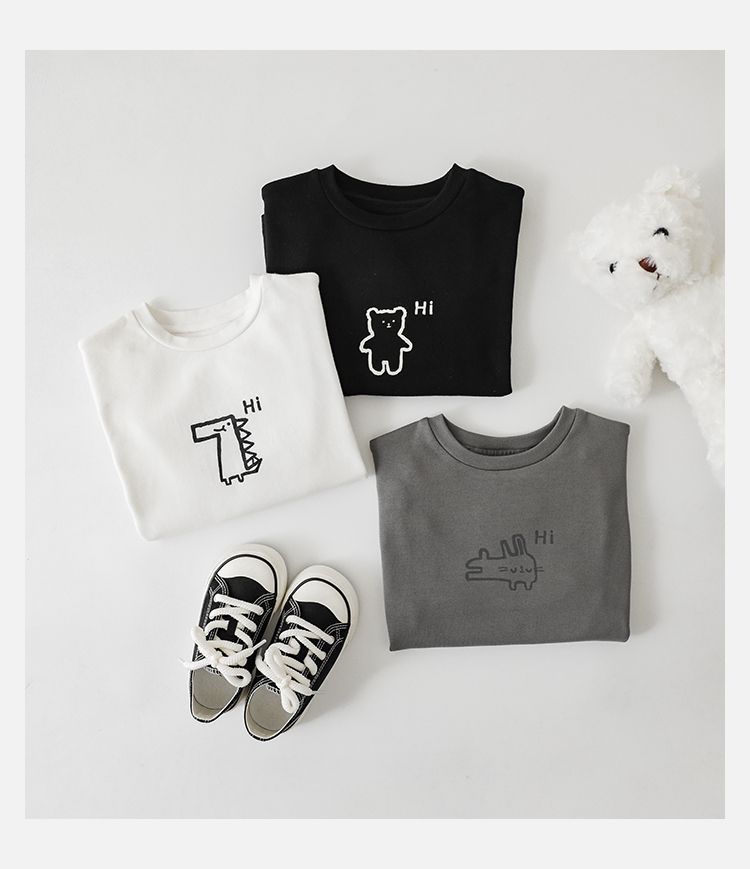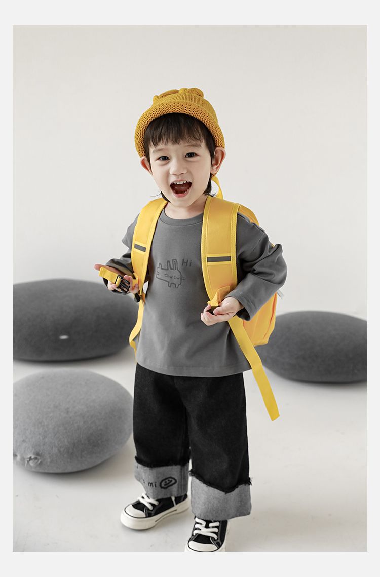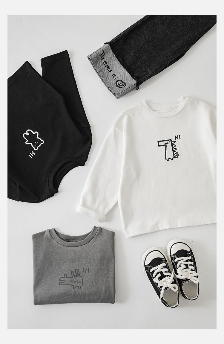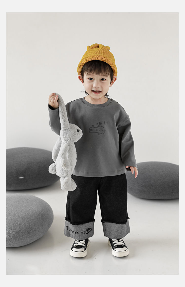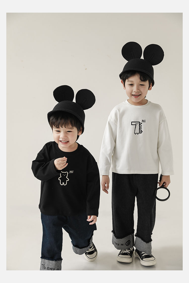 Wulibuyi 소년의 만화 인쇄 느슨한 둥근 목 풀오버 캐주얼 티셔츠 어린이 패션 긴팔 티셔츠 탑